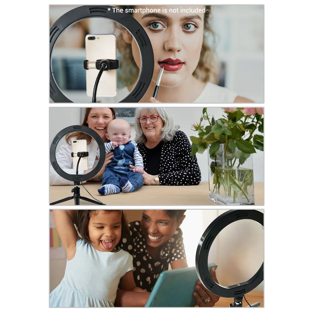 10 дюймов компактный размер кольцевой светильник на светодиодах, пластиковый материал, портативный и легкий.