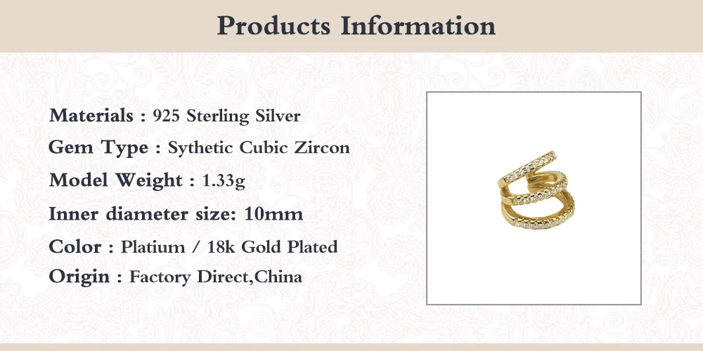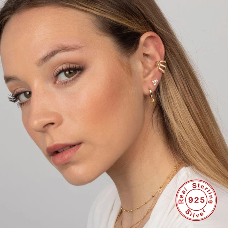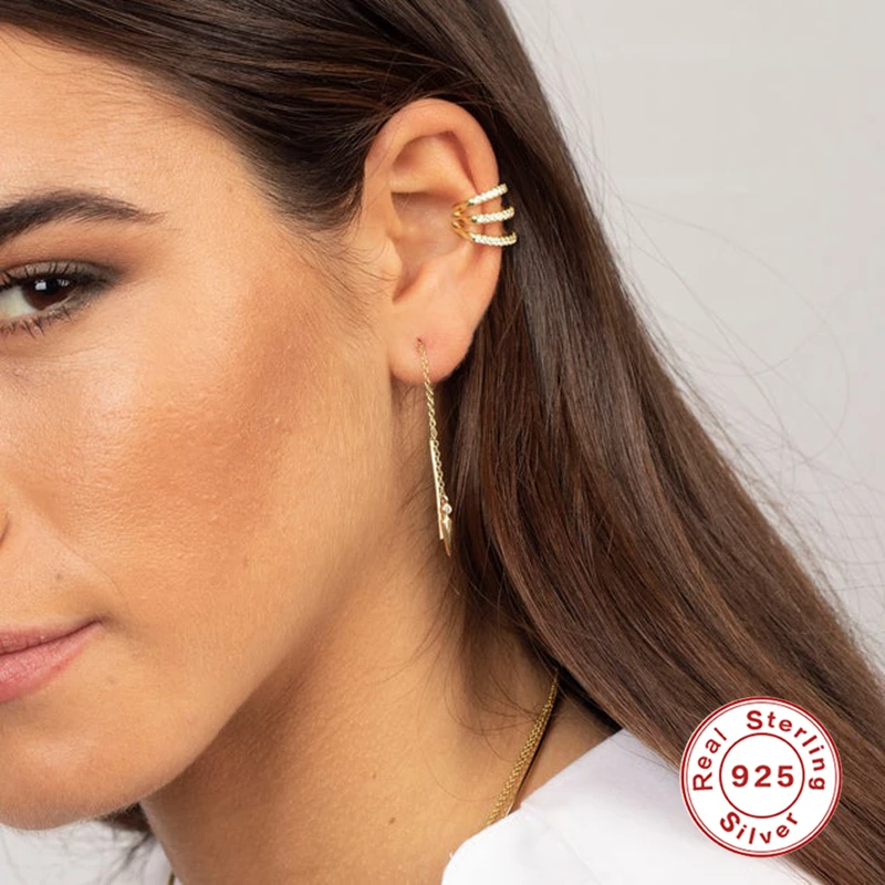Romad 1 шт. 925 пробы Серебряная Ушная манжета ааааа циркон три веревки Клипсы Серьги для женщин ювелирные изделия без пирсинга ушные манжеты W4