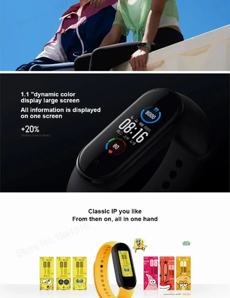 Примечание: 1. Есть две версии mi band 5 (стандартная версия и версия NFC). 2. Что касается NFC, только функция «аналоговая карта двери» будет использоваться за пределами материкового Китая. 3. Китайский язык по умолчанию-китайский, он также поддерживает английский язык, вы можете изменить язык в приложении «Mi fit». Особенности стандартной версии: 1. Динамический цветной дисплей с большим экраном 2,11 спортивных режимов 3,50 метров водонепроницаемый 4. 24-часовой формат сердечный ритм мониторинг 5,24 часов наблюдения за сном 6. Новое Женское здоровье 7,14 дней долгий срок службы батареи 8. Магнитная Зарядка 9. Alipay офлайн оплата Особенности версии NFC: 1. Динамический цветной дисплей с большим экраном 2,11 спортивных режимов 3,50 метров водонепроницаемый 4. 24-часовой формат сердечный ритм мониторинг 5,24 часов наблюдения за сном 6. Новое Женское здоровье 7,14 дней долгий срок службы батареи 8. Магнитная Зарядка 9. Alipay офлайн оплата 10. Проведите банковскую карту/автобусную карту/карту доступа 11. Интеллектуальный помощник Xiao Ai 12. Умный домашний контроль Спецификация Бренд: Xiaomi Модель: mi band 5 (китайская версия) Версия Bluetooth: BT 5,0 Совместимая Операционная система: Android 5,0 или выше, iOS 10,0 или выше Режим работы: сенсорный экран + кнопки Название приложения: Little Fit Язык браслета: английский и китайский Технические параметры Датчик: Датчик G, датчик сердечного ритма Экран Размер: 1,1 дюймов Тип: AMOLED Разрешение: 126*294 пикселей Емкость аккумулятора: 125 мАч Время работы в режиме ожидания: около 14 дней Время использования: около 7 дней Время зарядки: около 2 часов Метод зарядки: Магнитная Зарядка Длина ремешка: 155-219 мм Вес изделия: около 22 г Время вопросов -Почему мои часы не начинаются? 1. Часы должны быть подключены к зарядному устройству. 2. Если аккумулятор часов разрядится, вам необходимо зарядить его в течение определенного периода времени, а затем попытаться активировать часы. 3. Нажмите на область в нижней части экрана, чтобы активировать часы. -Почему мои часы не могут быть успешно заряжены? 1. Пожалуйста, убедитесь, что зарядное устройство 5 В/1 А. Если ток слишком высок, часы войдут в состояние автоматической защиты. 2. Убедитесь, что зарядный кабель правильно подключен к позиции зарядки на задней крышке часов. 3. Если ваши часы все еще не могут быть успешно заряжены, пожалуйста, немедленно свяжитесь с нашей службой поддержки клиентов. Пожалуйста, нажмите на службу поддержки клиентов. -Почему в посылка, которую я получил, нет зарядного кабеля? 1. Пожалуйста, проверьте руководство пользователя и страницу деталей продукта, чтобы подтвердить, заряжается ли продукт через USB. Если это так, пожалуйста, отключите ремешок, и вы найдете разъем для зарядки. 2. Если ваши часы не имеют функции USB зарядки и вы не получили зарядный кабель, пожалуйста, немедленно свяжитесь с нашей службой поддержки клиентов. -Как изменить дату и время? Пожалуйста, отсканируйте qr-код в Руководстве для загрузки приложения. Когда часы подключены к телефону, время и дата будут синхронизированы автоматически. -Можно ли носить его для плавания? Не рекомендуется носить его для плавания, потому что это не профессиональные часы для плавания.