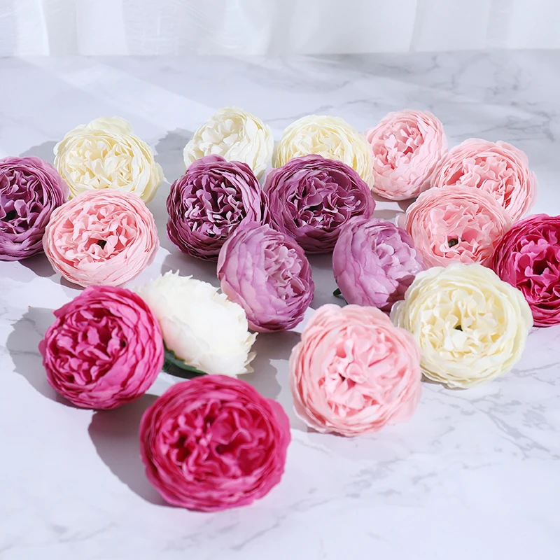 5 шт., розовые Искусственные цветы, Шелковая Роза, сделай сам, свадебное украшение для дома, скрапбук, белый пион, искусственный цветок, декор для стен, аксессуары