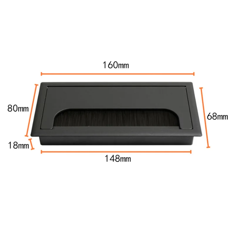 Table Desk Rectangle Wire Cover Cable Grommet Wire Hole Cover Outlet Port with Black Brush Furniture Hole Plug