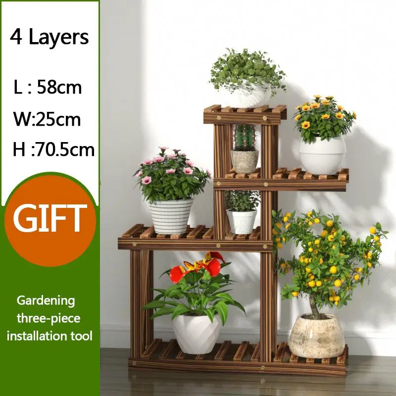 Деревянная подставка для растений, напольная садовая полка для цветочного горшка