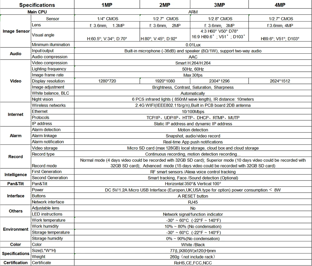 Ip-камера E2: ◆ Простая установка и использование, подключи и работай ◆ Просмотр видео в любое время и в любом месте, поддержка нескольких платформ, терминалов, сетей ◆ Четкое и плавное видео, Интеллектуальная передача ◆ Контроль уровня безопасности банка и обеспечение конфиденциальности ◆ Обновление онлайн-прошивки, функция обновления и синхронная работа ◆ Умный алгоритм сжатия видео H.264, с более низкой скоростью передачи видео и экономит больше места при записи ◆ Поддержка двустороннего аудио, телекоммуникационного уровня обработки сигналов ◆ Поддержка мобильных устройств Android /iOS, удаленный мониторинг в реальном времени ◆ Обнаружение движения, связь снимок/запись видео, push-уведомления в реальном времени ◆ Инфракрасное ночное видение освещения (радиус действия ИК: 10 метров) 24 часа в сутки, дневное и ночное наблюдение, IR-CUT переключатель ◆ Поддержка карт micro SD (макс. 512 ГБ), облачных и облачных систем хранения ◆ Поддержка RF смарт-датчиков/Alexa Голосовое управление отслеживанием ◆ Поддержка AI функций (опционально): интеллектуальное отслеживание, распознавание лица/звука ◆ Поддержка супер длительного хранения видео ◆ Поддержка дициального зума (8x зум) ◆ Поддержка 2,4G WIFI(IEEE802.11b/g/n) ◆ Поддержка P/T/Z удаленно (по горизонтали: 350 ° и по вертикали: 100 °) Размер: 80x78x115 Вес: 210 г Посылка: 1 * Камера, 1 * кабель для передачи данных, 1 * Адаптер 1 * кронштейн, 1 * Руководство пользователя, 2 * винты