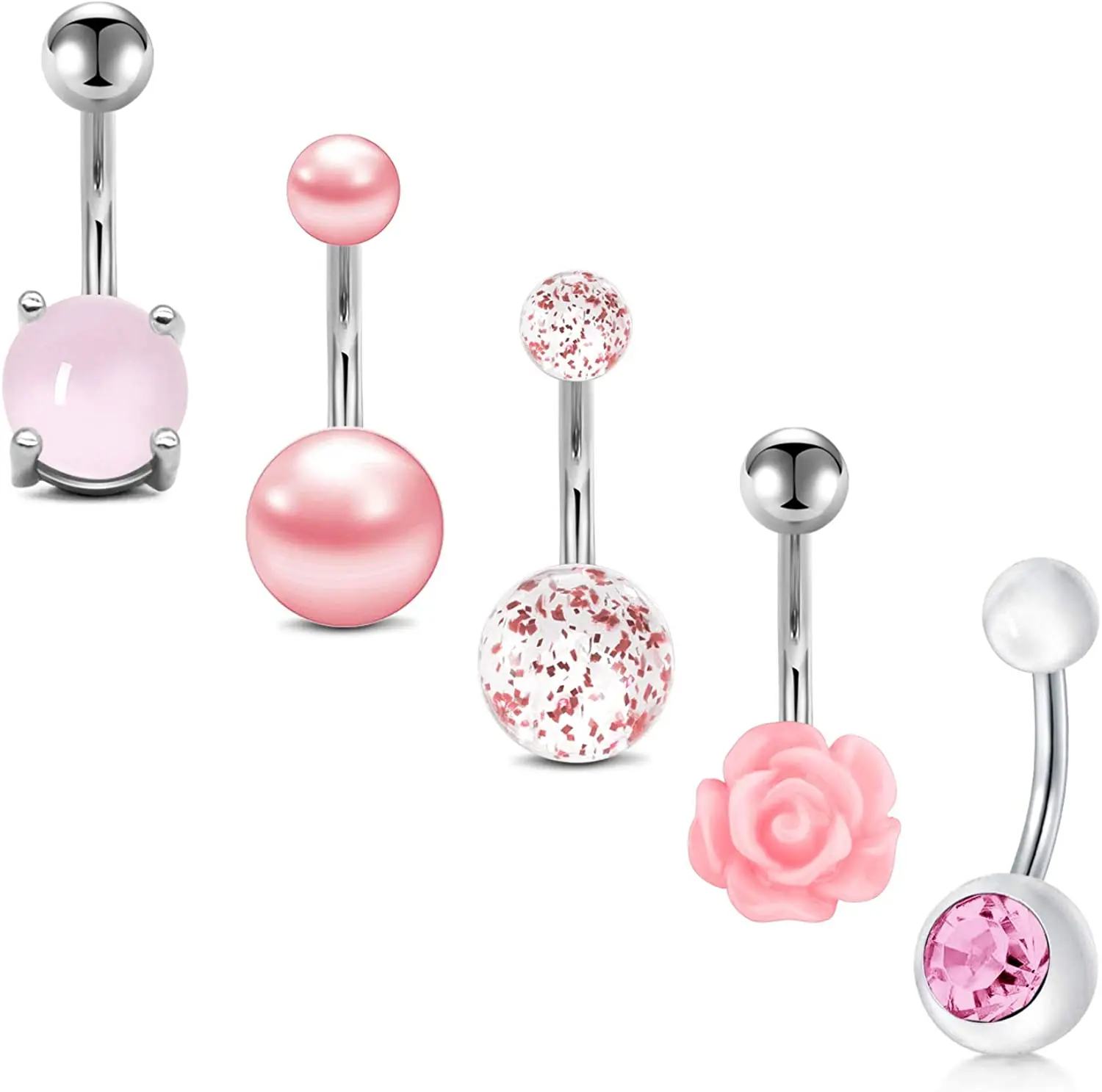 Кольца для живота с цветами: 5 шт., розовый комплект, кольца на пуговицах для живота с цветами, идеально подходит для летнего пляжа или повседневного платья. Подходит для вашего бикини или купального костюма