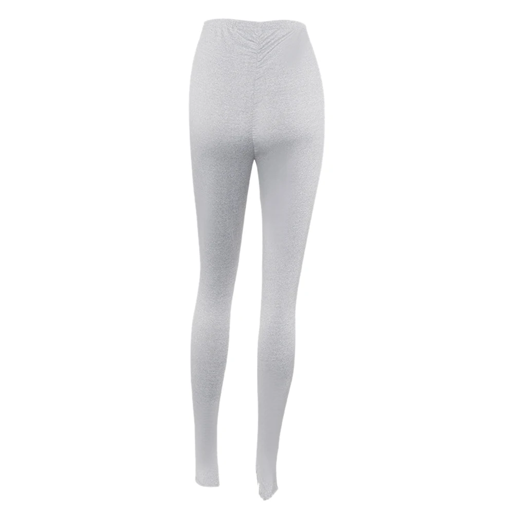 Женские штаны-леггинсы, женские штаны для бега, штаны-клеш с разрезом, уличная одежда, однотонные серые штаны с высокой талией.