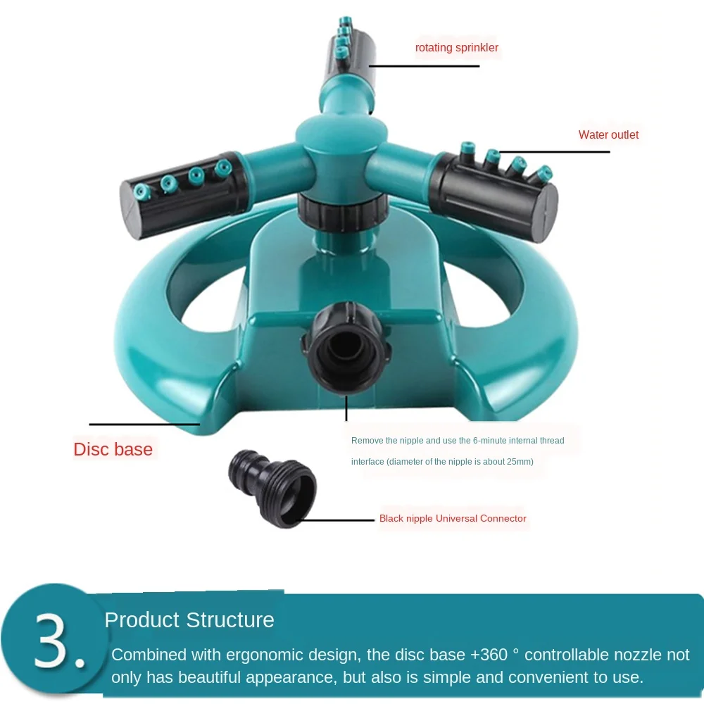 Спринклер большой три зубец 360 градусов вращающийся спринклер для орошения газонов спринклер Полумесяца