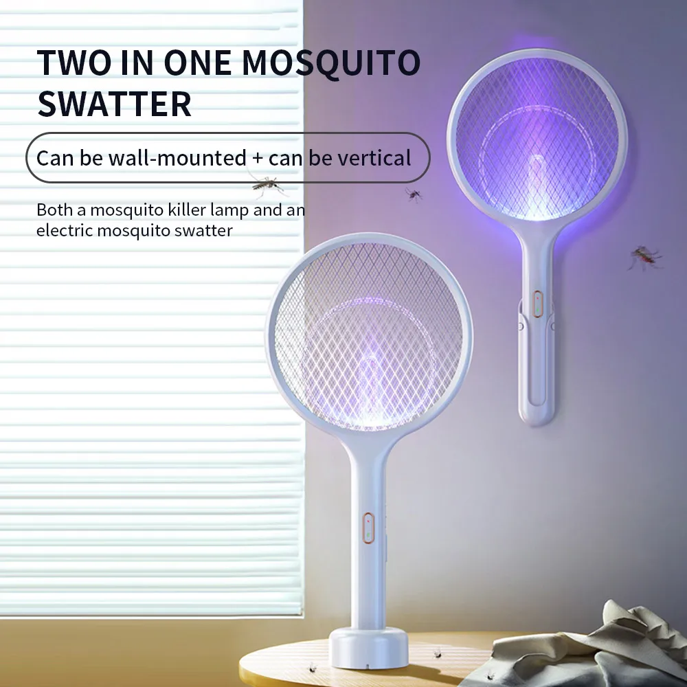 ● Mosquito killer bat, coming with a desktop charging base and a wall mounted charging base, can be put in desk, held in hand and hanged on wall.