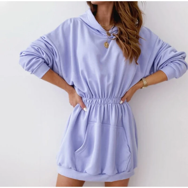 Осенняя Женская толстовка с большим карманом, Женская толстовка с длинным рукавом и эластичной резинкой на талии, модные повседневные женские пуловеры с капюшоном