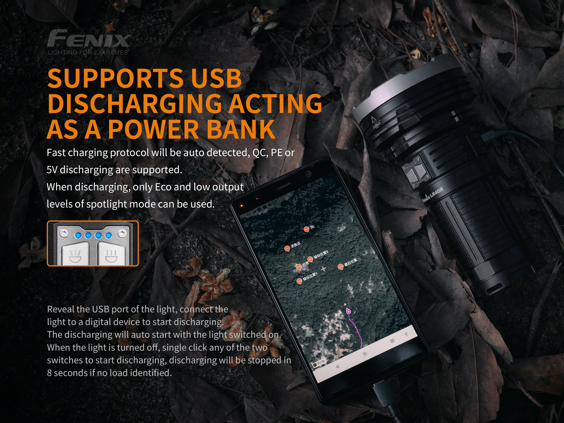 Fenix LR40R-это высокопроизводительный перезаряжаемый ультракомпактный поисковый фонарик, сочетающий в себе точку и прожектор. Кейтеринга для многочисленными на открытом воздухе и экстремальных условиях, этот светильник представляет собой незаменимый помощник в спелеологии, поиска и спасения, а также выступать в качестве резервного копирования светильник для водителей.