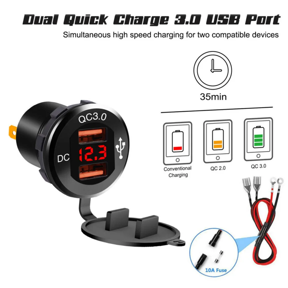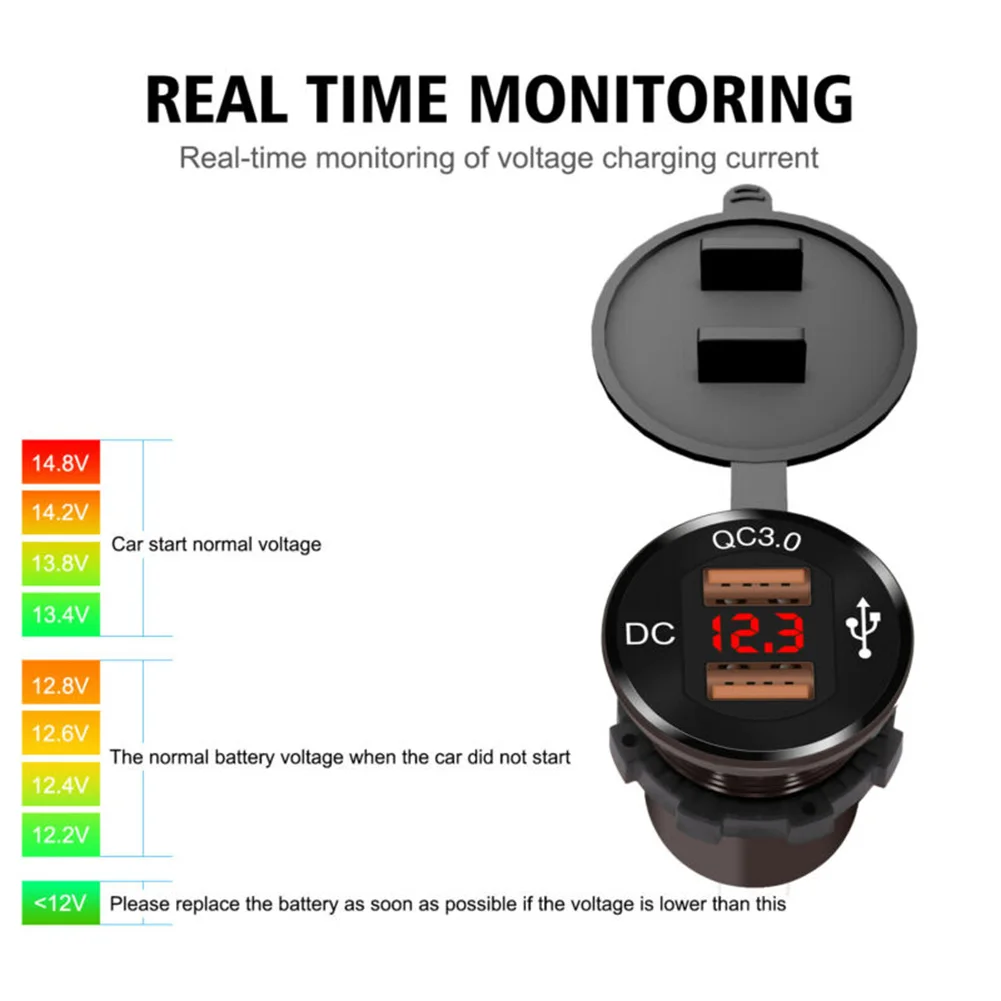 1*QC 3,0 Автомобильное зарядное устройство с цифровым вольтметром
