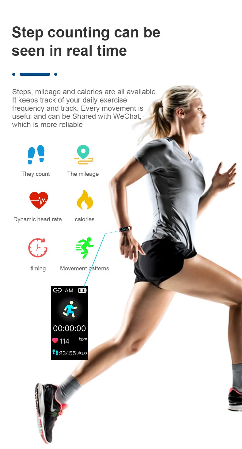 Размер экрана: квадратный экран 0,96 дюйма Тип экрана: TFT Материал браслета: ТПУ Основной чип: Dialog 14585 Сенсорный режим: одно касание Дисплей: квадратный экран 0,96, полный угол обзора TFT IPS Разрешение: 80*160 Размер вспышки: 32 м Версия Bluetooth: BLE4.0 Емкость аккумулятора: 125 мАч Способ зарядки: зажим для зарядки Язык поддержки браслета: английский (по умолчанию), упрощенный китайский Язык отображения приложения: китайский, английский, китайский [традиционный], японский, корейский, французский, немецкий, русский, польский, испанский, португальский, голландский, арабский Языки браслета: албанский, ирландский, эстонский, баскский, белорусский, болгарский, исландский, польский, Африканский, датский, немецкий, русский, французский, филиппинский, финский, французский лисийский, казахский, гаитянский креольский, хауса, голландский, кыргызский, галисийский, каталанский, чешский, каннада, Корсиканский, латинский, Латышский, люксембургский, румынский, малагасийский, Мальтийский, малайский, Македонский, маори, непальский, норвежский, португальский, японский, шведский, самоанский, сербский, сингальский, словацкий, словенский, суахили, шотландский гэльский, цебуано, сомалийский, таджикский, турецкий, валлийский, украинский, узбекский, испанский, гавайский, Венгерский, шуна, Igbo, итальянский, английский, йоруба, вьетнамский, китайский [упрощенный], китайский [традиционный] Мониторинг здоровья: обнаружение пульса, отслеживание пульса, обнаружение артериального давления, отслеживание артериального давления, обнаружение кислорода в крови, мониторинг сна, обнаружение ЭКГ Стандартные функции: подсчет шагов, расстояние перемещения, расход калорий, яркий экран, подняв руку, яркий экран, поворачивая запястье, гаснет экран обратной стороной Спортивные режимы: бег, скалолазание, плавание, езда на велосипеде, прогулки Функция напоминания: напоминание о тревоге, напоминание о звонках, SMS-напоминание, напоминание о WeChat, QQ-напоминание, напоминание о Taobao, напоминание о Alipay, Facebook, Twitter, Tumblr напоминание, whatsAPP, Line, instagram, напоминание о Linkeln, skype, Snapchat, напоминание Sina Weibo, напоминание о длительном сидении, напоминание о питьевой воде, другие напоминания Другие функции: секундомер, поиск мобильный телефон, камера с дистанционным управлением, отслеживание движения в приложении, движение WeChat Приложение: JYouPro Адаптация к системе мобильный телефон: Android 5,0 и выше, IOS 9,0 и выше, поддержка Bluetooth 4,0 Упаковочный лист: 1 * браслет 1 * зарядный кабель 1 * Руководство 1 * упаковочная коробка