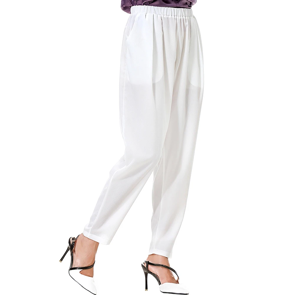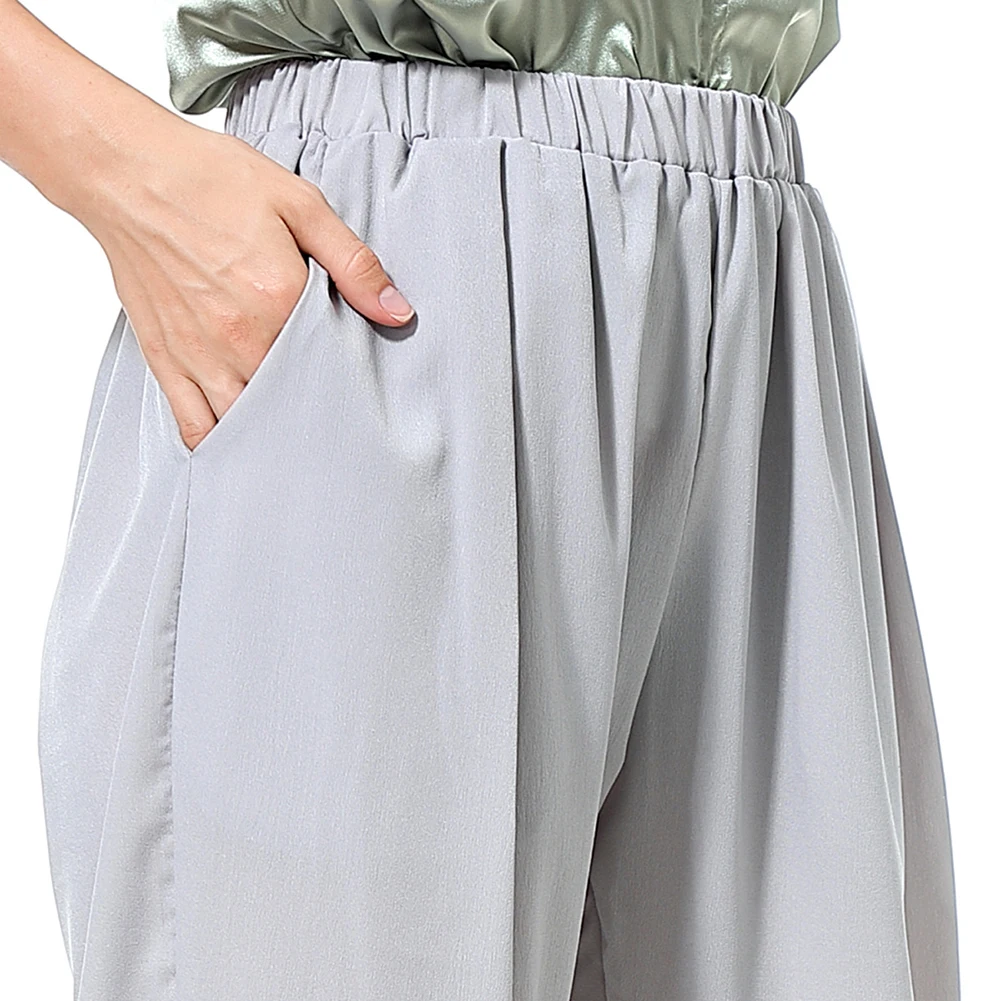 Повседневные Женские однотонные свободные длинные широкие брюки с карманами, шаровары