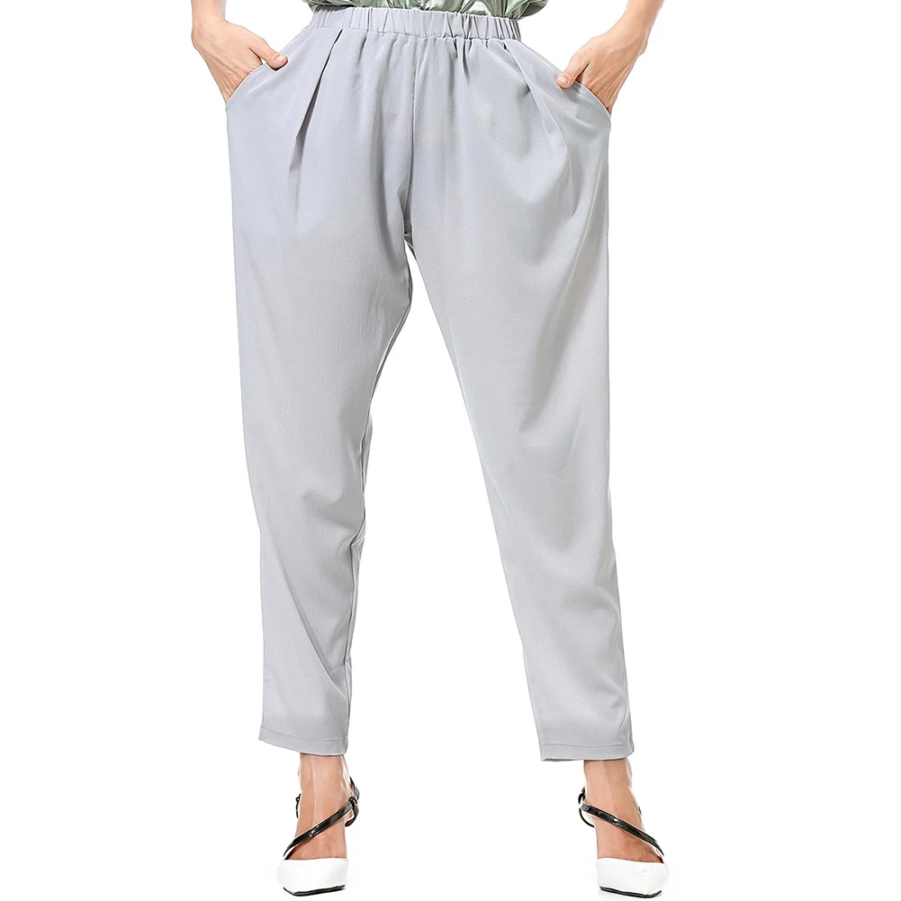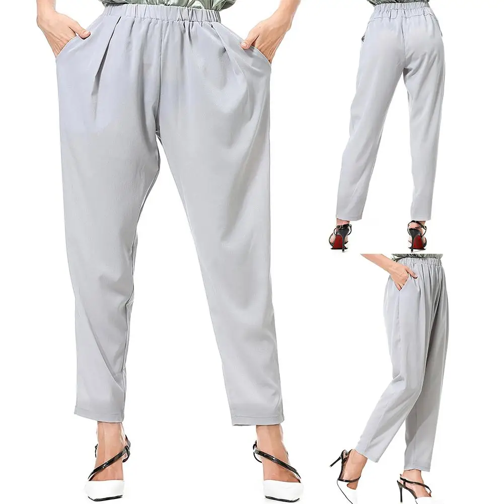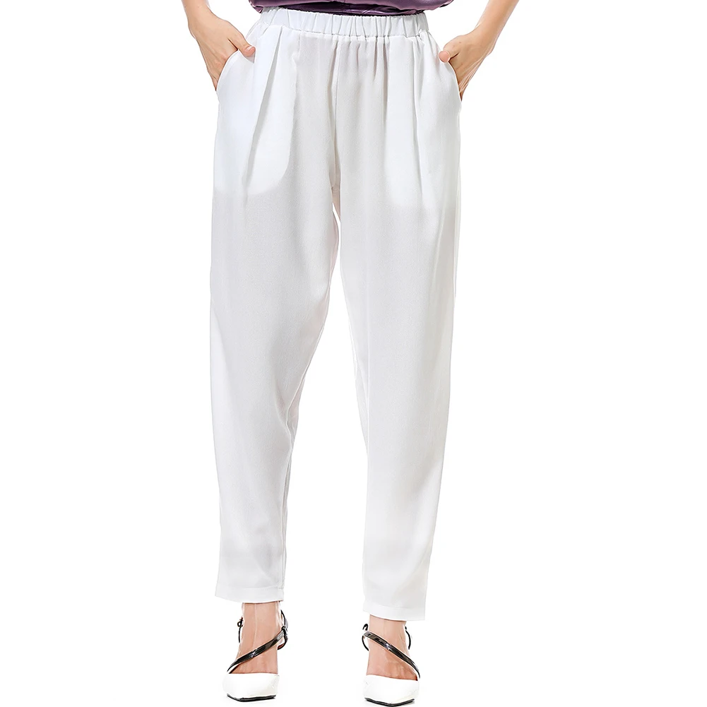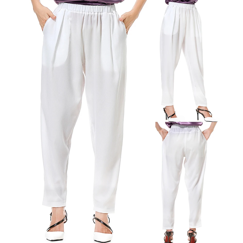Повседневные Женские однотонные свободные длинные широкие брюки с карманами