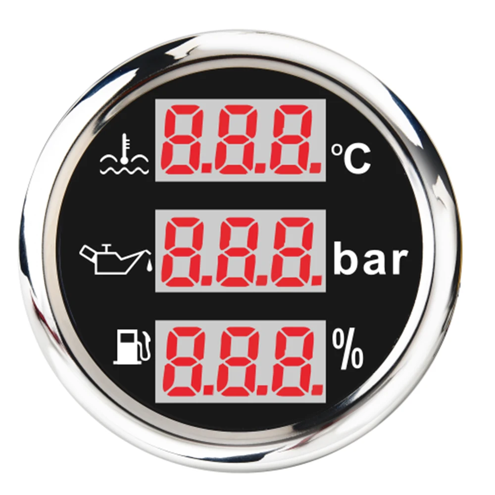 3 в 1 Многофункциональный цифровой датчик 52 мм Датчик температуры воды датчик давления масла бар датчик уровня топлива водонепроницаемый 316 нержавеющая сталь