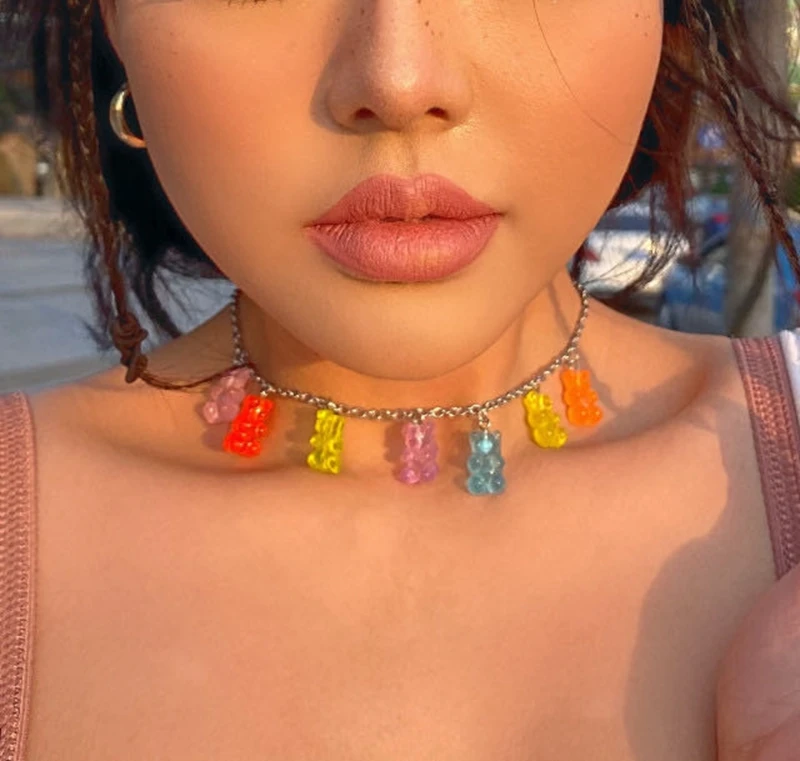 Cute candy color cartoon bear necklace DIY handmade colorful resin bear fresh necklace jewelry