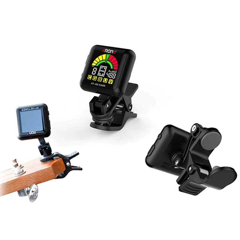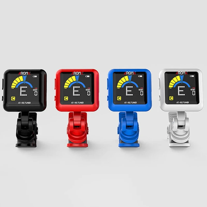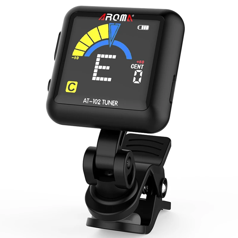Aroma At-102 Rechargeable Clip-On Guitar Tuner Color Sn With Built-In Battery Usb Cable For Chromatic Guitar Bass Ukulele(Bl