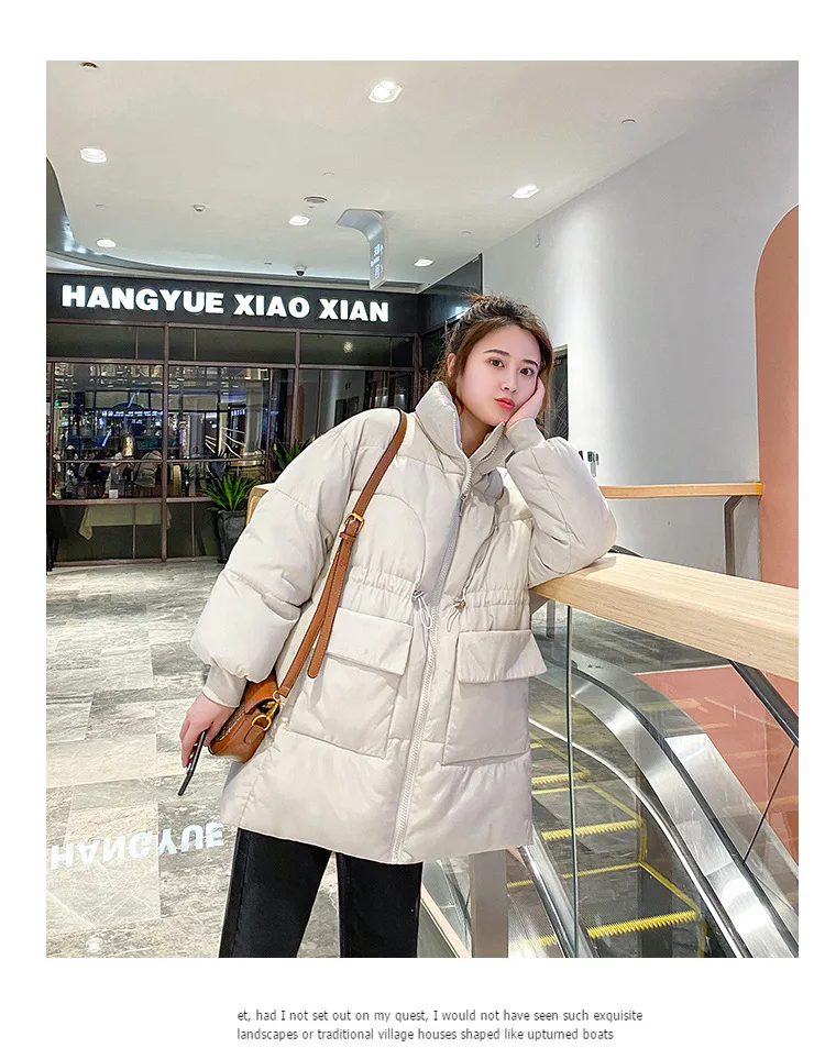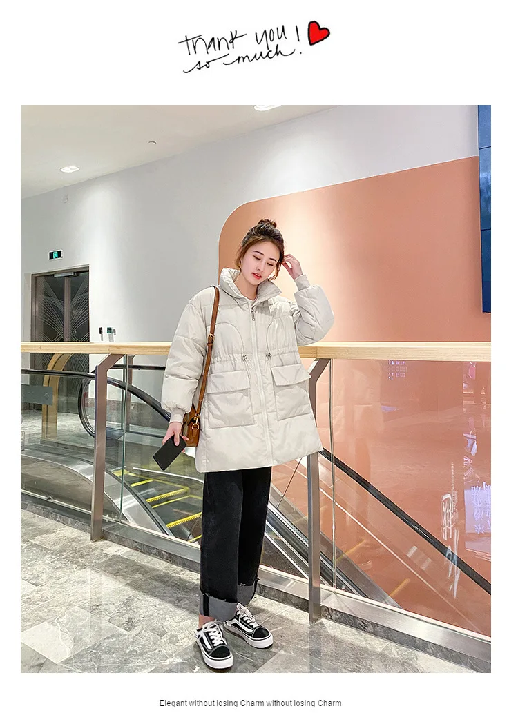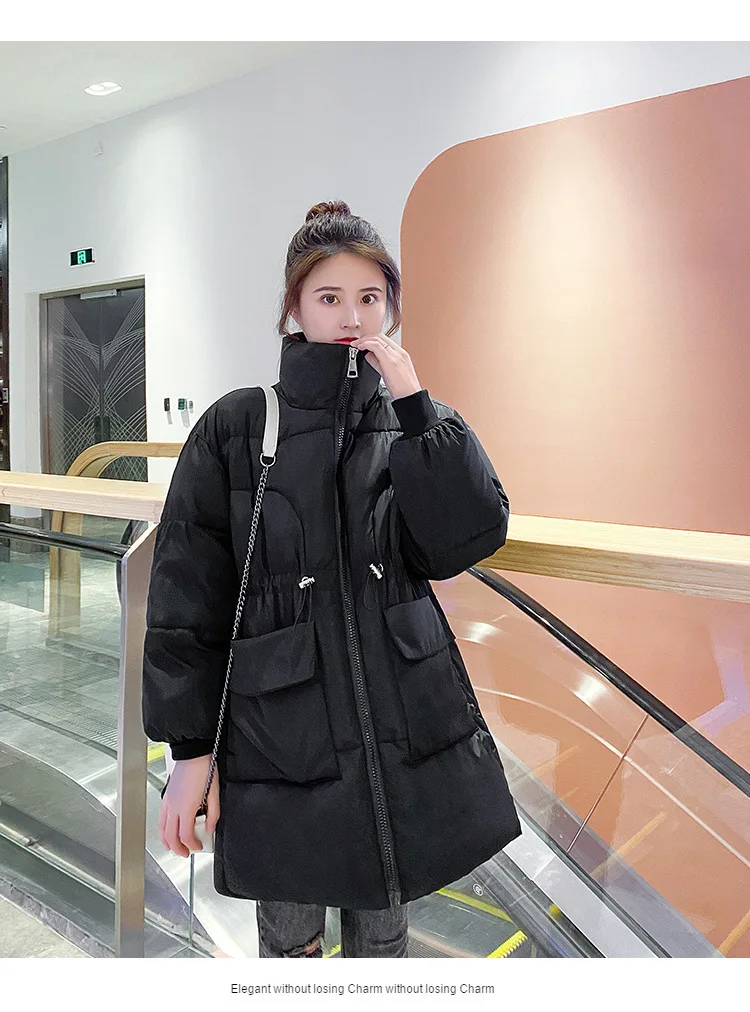 Зимнее теплое пальто Seenimoe 2019 женское облегающее с хлопковой подкладкой и двойной