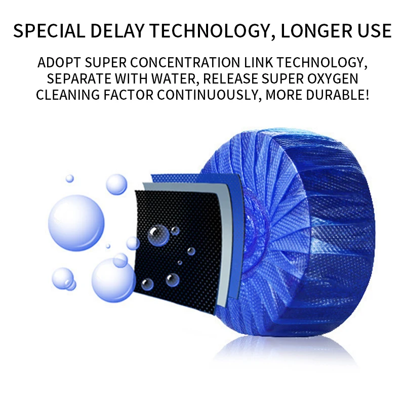 <Долгое время: 1 шт. очиститель унитаза может использоваться около 5-7 дней, качество воды и температура, время промывки в день, размещение синего пузыря, все это повлияет на время использования синего пузыря.