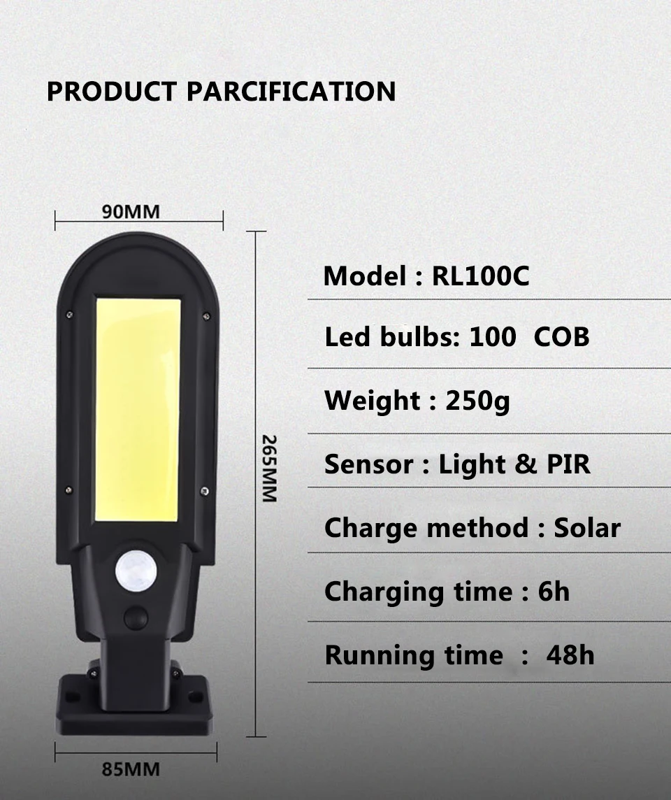 4. Долгие рабочие часы: если полностью зарядить аккумулятор более 8 часов с прямым солнечным светом, он будет держать освещение более 8 часов