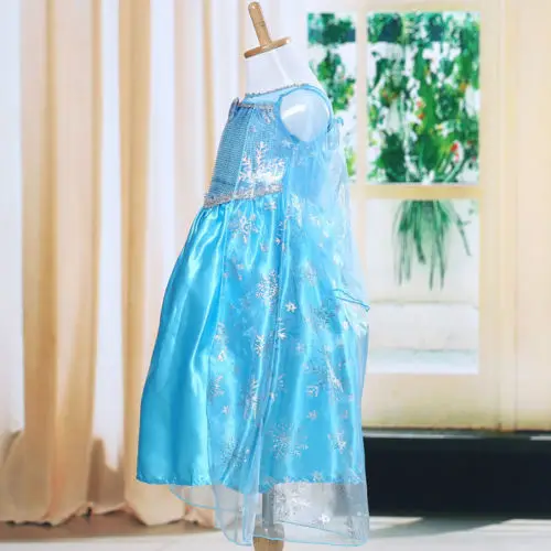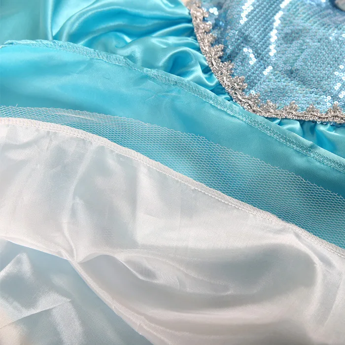 Baby Girls Shiny Sequined Princess Cosplay Costume 3-8Y Kids Children Blue A Line Satin Mesh Party Dress Ball Gown