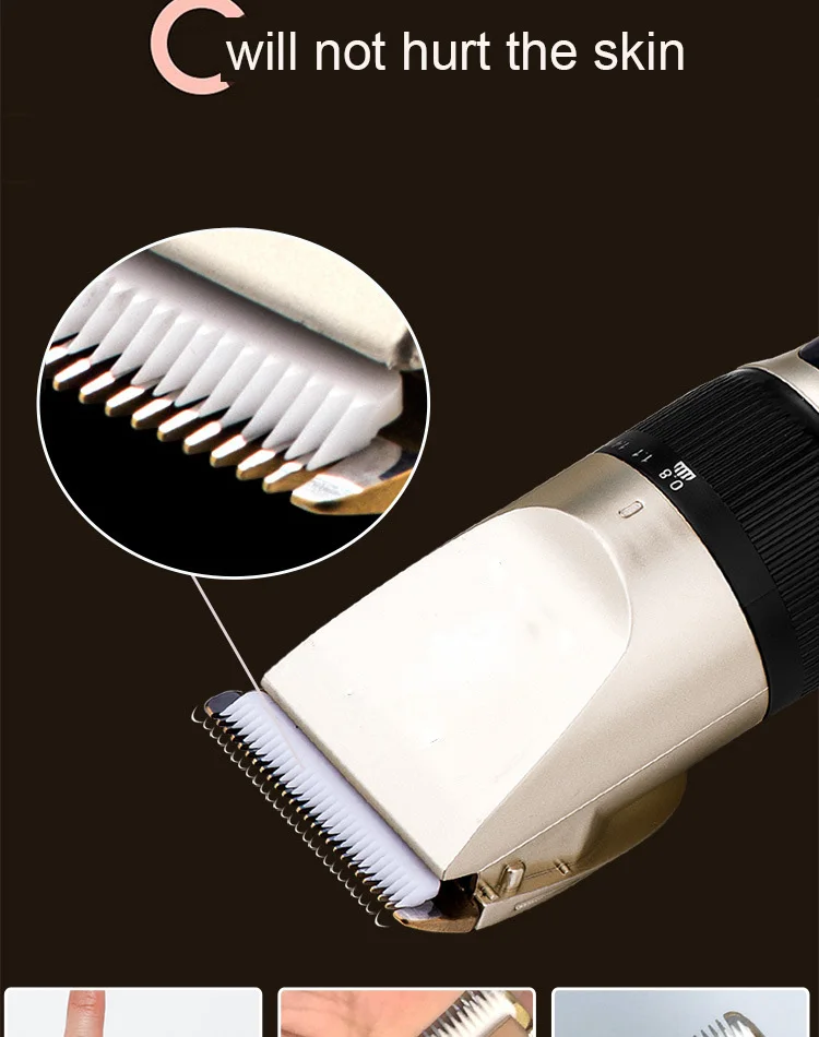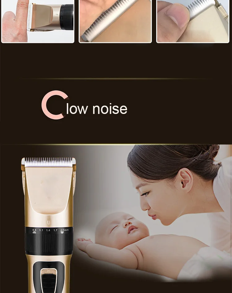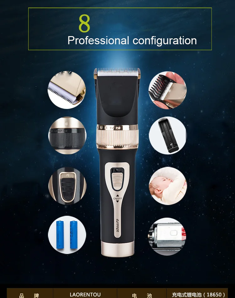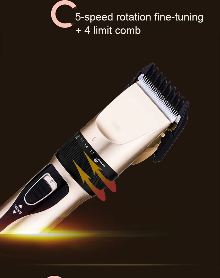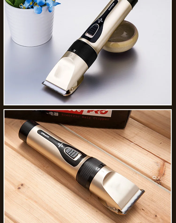 -- Модель продукта: A46 -- Напряжение: 100-240 В -Номинальная частота: 50/60 Гц -Цвет изделия: золотой, черный -- Материал головки инструмента: титановое керамическое лезвие -- Подходит для: универсальный для детей и взрослых -- Pacakge: упаковочная коробка, ручная, четырехразовая Расческа с двумя головками, зарядка и Чистящая Щетка