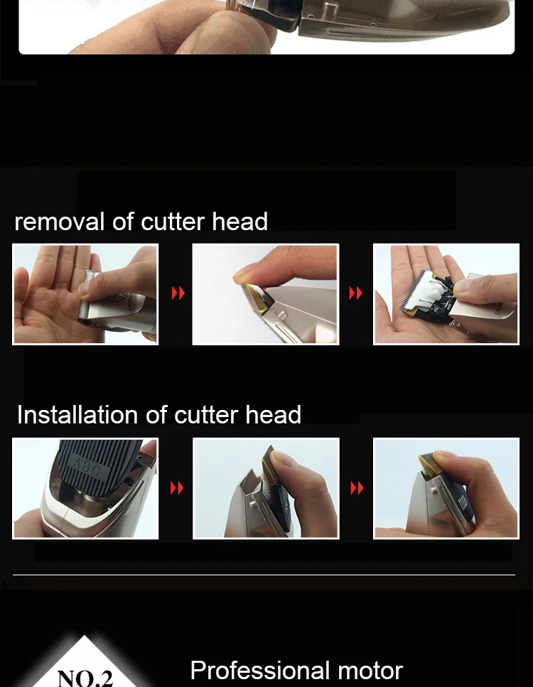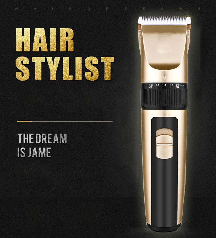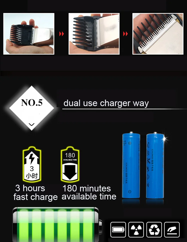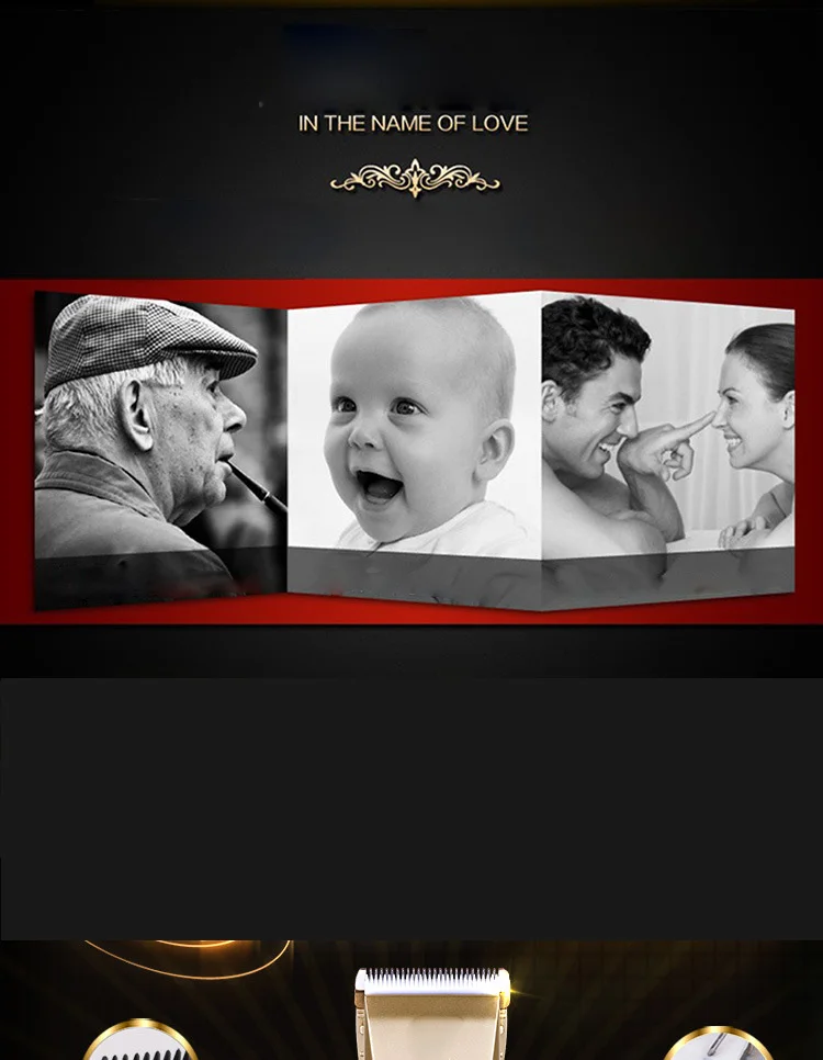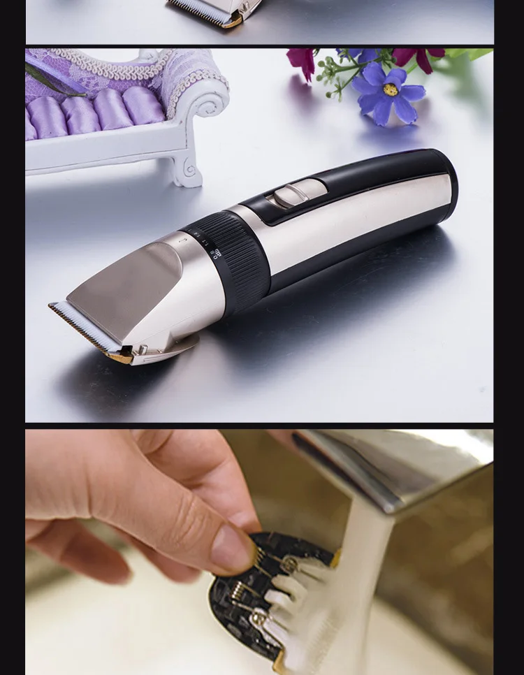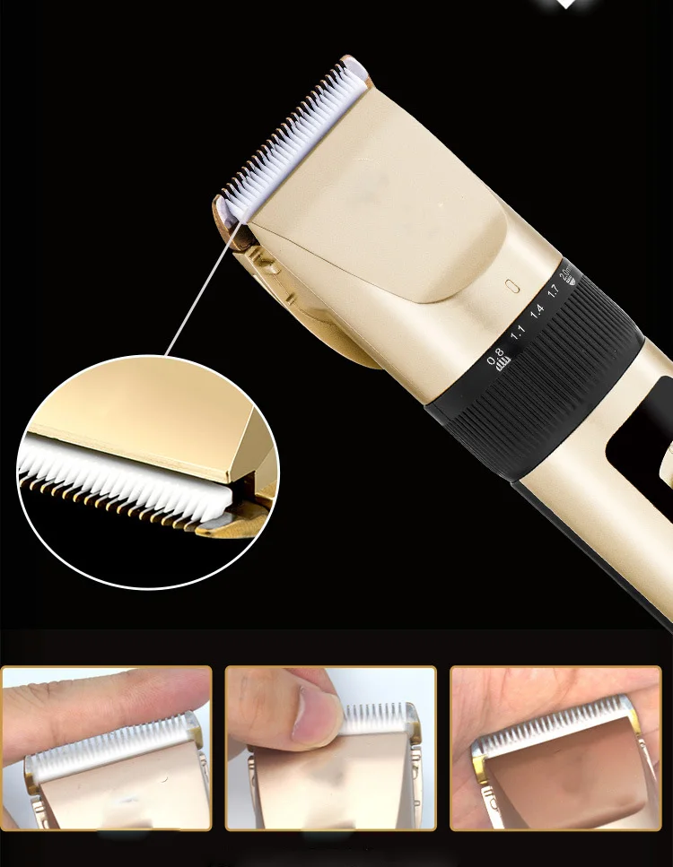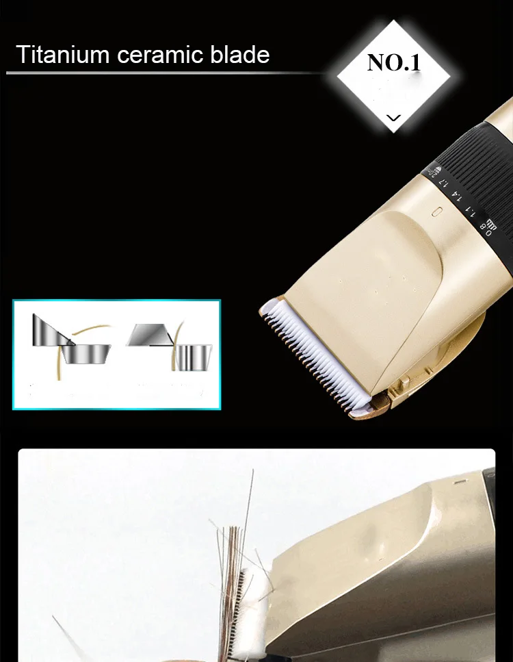 -- Модель продукта: A65 -- Напряжение: 100-240 В -Номинальная частота: 50/60 Гц -Цвет изделия: золотой, черный -- Материал головки инструмента: титановое керамическое лезвие -- Подходит для: универсальный для детей и взрослых -- Pacakge: упаковочная коробка, ручная, четырехразовая Расческа с двумя головками, зарядка и Чистящая Щетка
