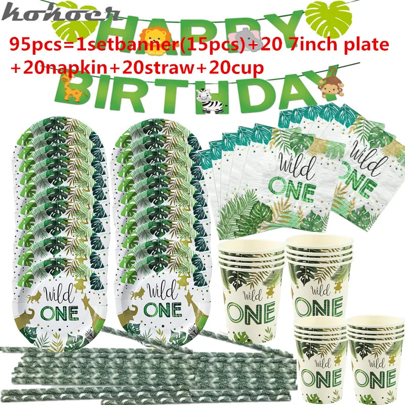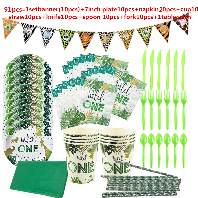 95 шт./лот 20 человек ues Wild One Safari Jungle Theme животные баннер чашка салфетка соломенная скатерть для первого дня рождения вечерние Dec