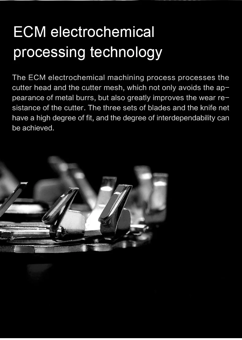 Основные характеристики: ● 3D интеллектуальная плавающая головка инструмента, гибкая для различных контуров лица ● Двухкольцевая сетка, увеличивает площадь контакта между сеткой и лицом и эффективно повышает эффективность бритья ● Лезвие и сетка изготовлены из импортной стали, острая, для бритья ● Автоматическая технология шлифования, лезвие и сетка будут измельчать друг друга, без частого замены головки ● Высокая скорость, быстрая скорость двух передач, длительное нажатие 3 секунды Легкая регулировка ● Двойная Интеллектуальная защита: разумно Контролируйте электрическое количество, держите низкую мощность и стабильно уменьшайте, когда электрическое количество низкое, если головка лезвия затруднена, она также будет остановлена для защиты ● Водонепроницаемость IPX7, одна кнопка для мытья воды, поддержка влажного и сухого использования. ● Встроенный интеллектуальный дорожный замок, избегайте потребления энергии по ошибке. ● Быстрая зарядка Type-C, полная зарядка за 90 минут, 60 минут, общее время работы. ● Светильник с сенсорной кнопкой, эргономичный дизайн
