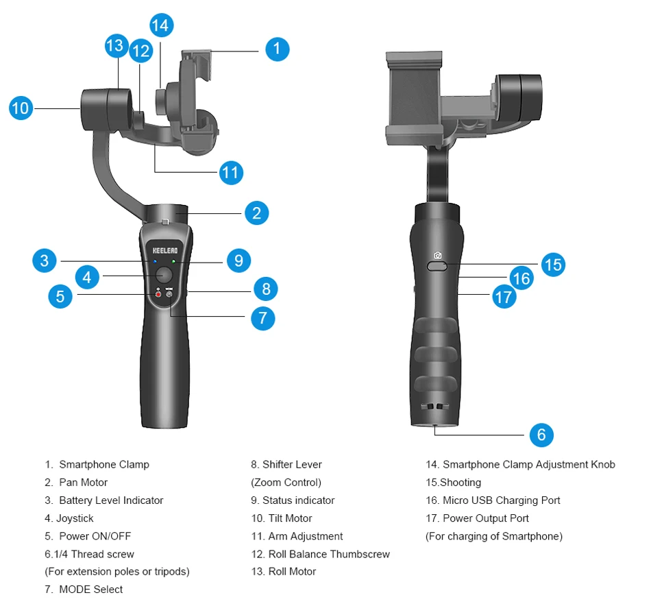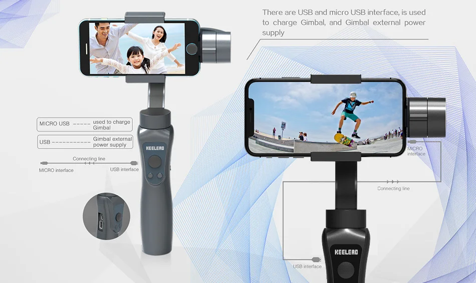 Штатив-стабилизатор KEELEAD, с 3 осями вращения для iPhone Xs Max Xr X 8 Plus 7 6 SE, экшн-камеры Samsung