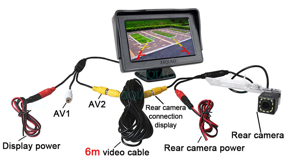 1 x Автомобильная камера заднего вида; 1x6 м видеокабель; 1x1 м кабель питания; 1 x Руководство пользователя