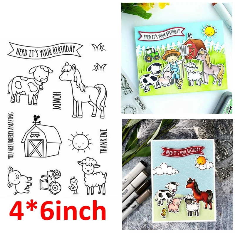 QWELL 4*6 дюймов прозрачные марки Корова Лошадь Коза лошадь свинья курица брат сарай солнце автомобиль трава DIY Скрапбукинг 2020 Новый