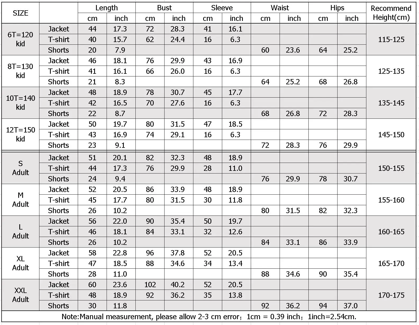 Show moreThe bracelets, gloves, holsters, belts and necklets are all of the same size, one size. Jackets and shorts are leather fabrics. They can't be washed in water. They can only be wiped with wet paper towels. If you have any questions, please send information to tell us, we will in the shortest possible time to reply you! Please note that the S-XXL size is for adults and the 6T (120) -12T (150) size is for children. Please note: there is only one glove.