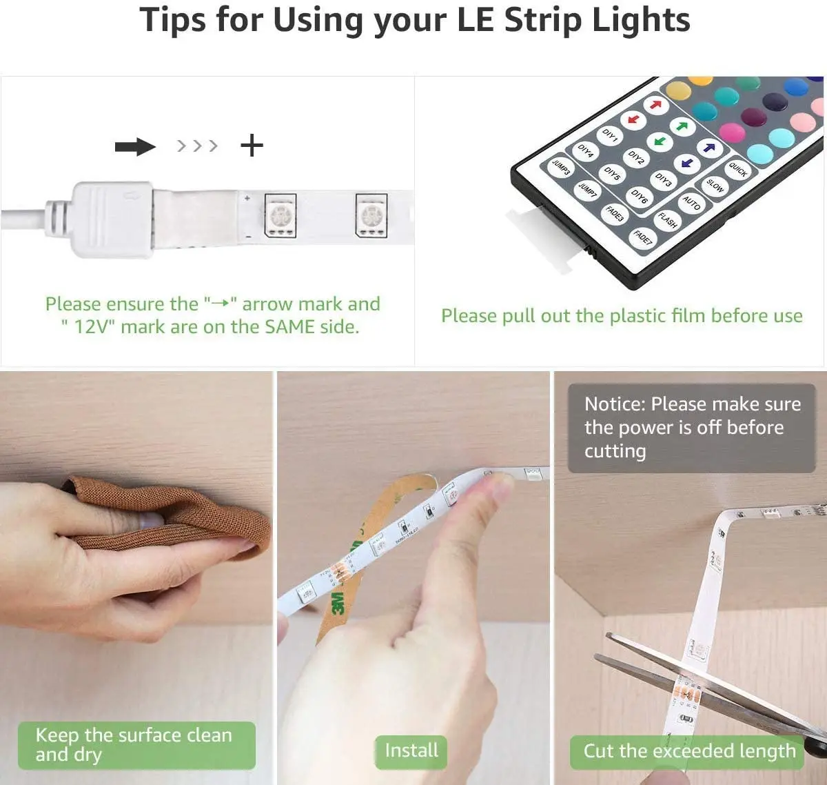 Примечание: rgb-лента включает 44Key пульт дистанционного управления и источник питания, одноцветная полоса включает разъем постоянного тока и источник питания.
