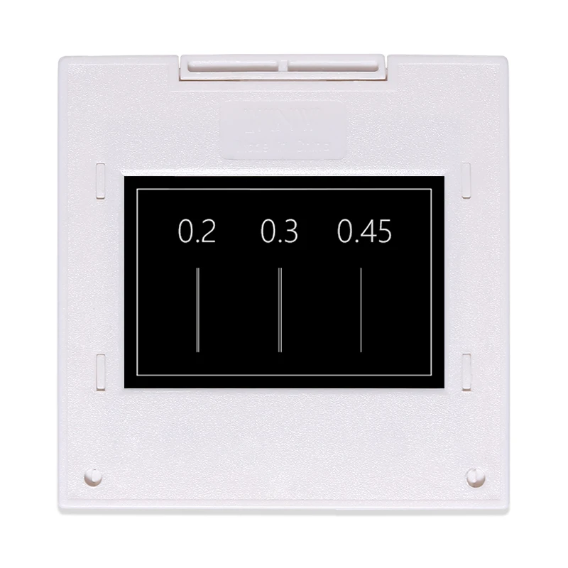 Название: решетка с двойным разрезом Материал: пластик Размер оправы: 50x50 мм Толщина: 2,0 мм Ширина линии: подходит для 0,05 мм Расстояние: 0,2 мм/0,3 мм/0,45 мм