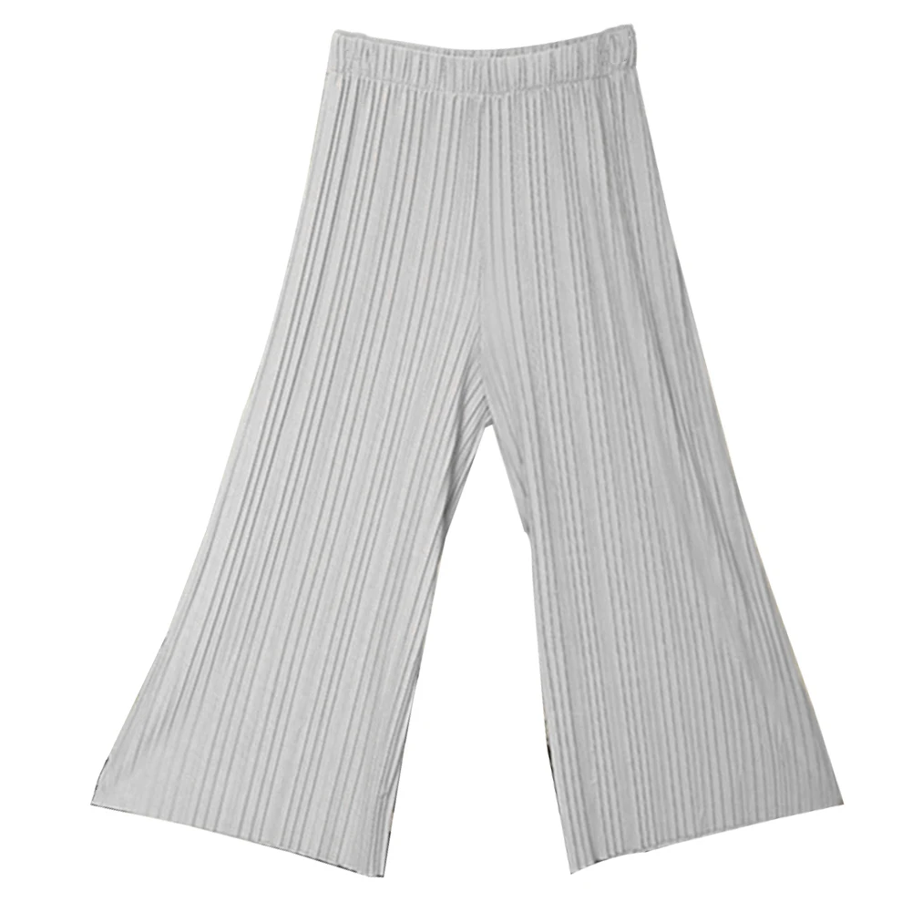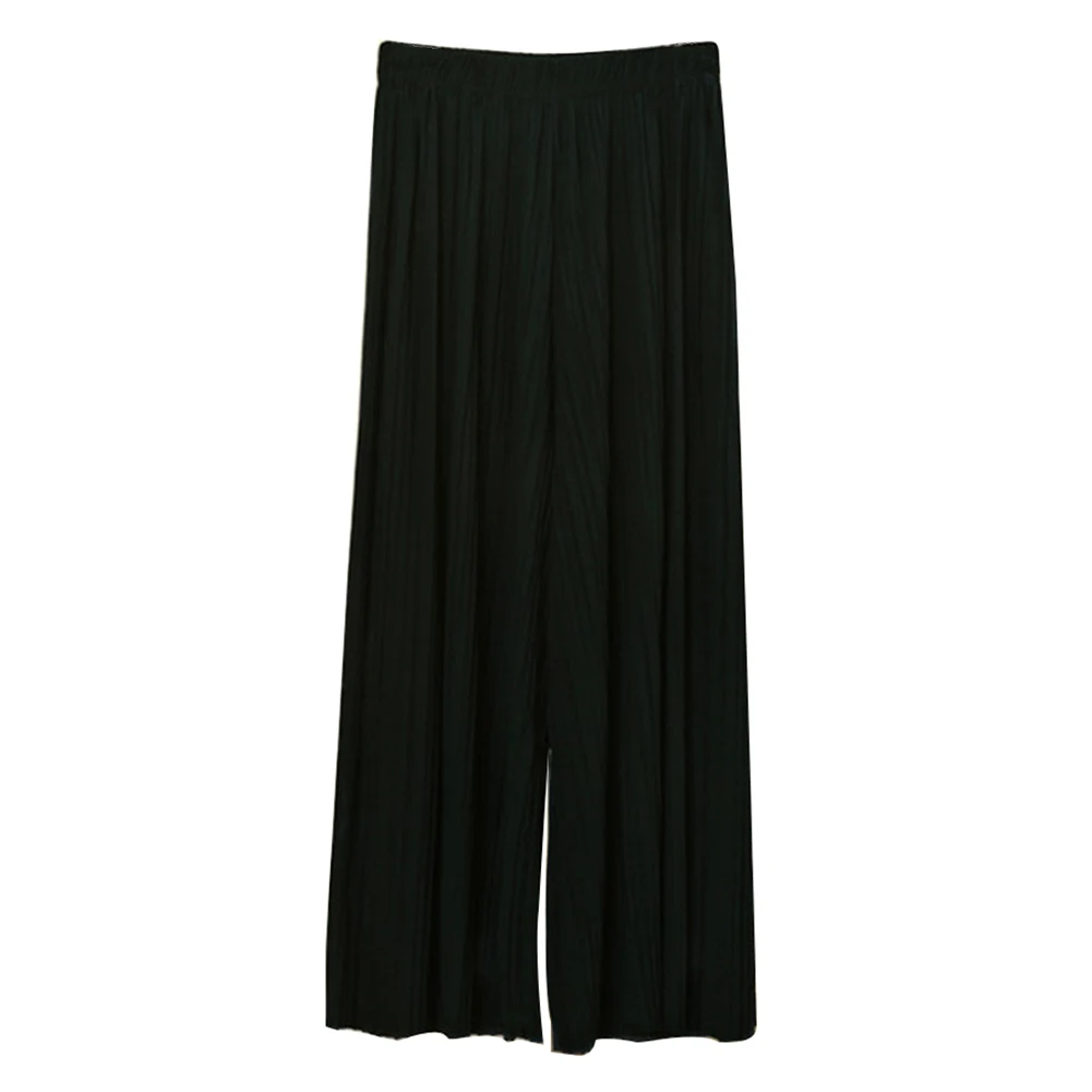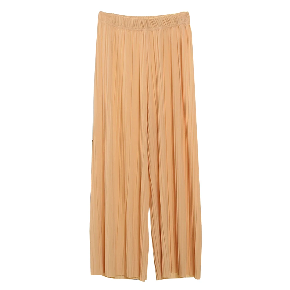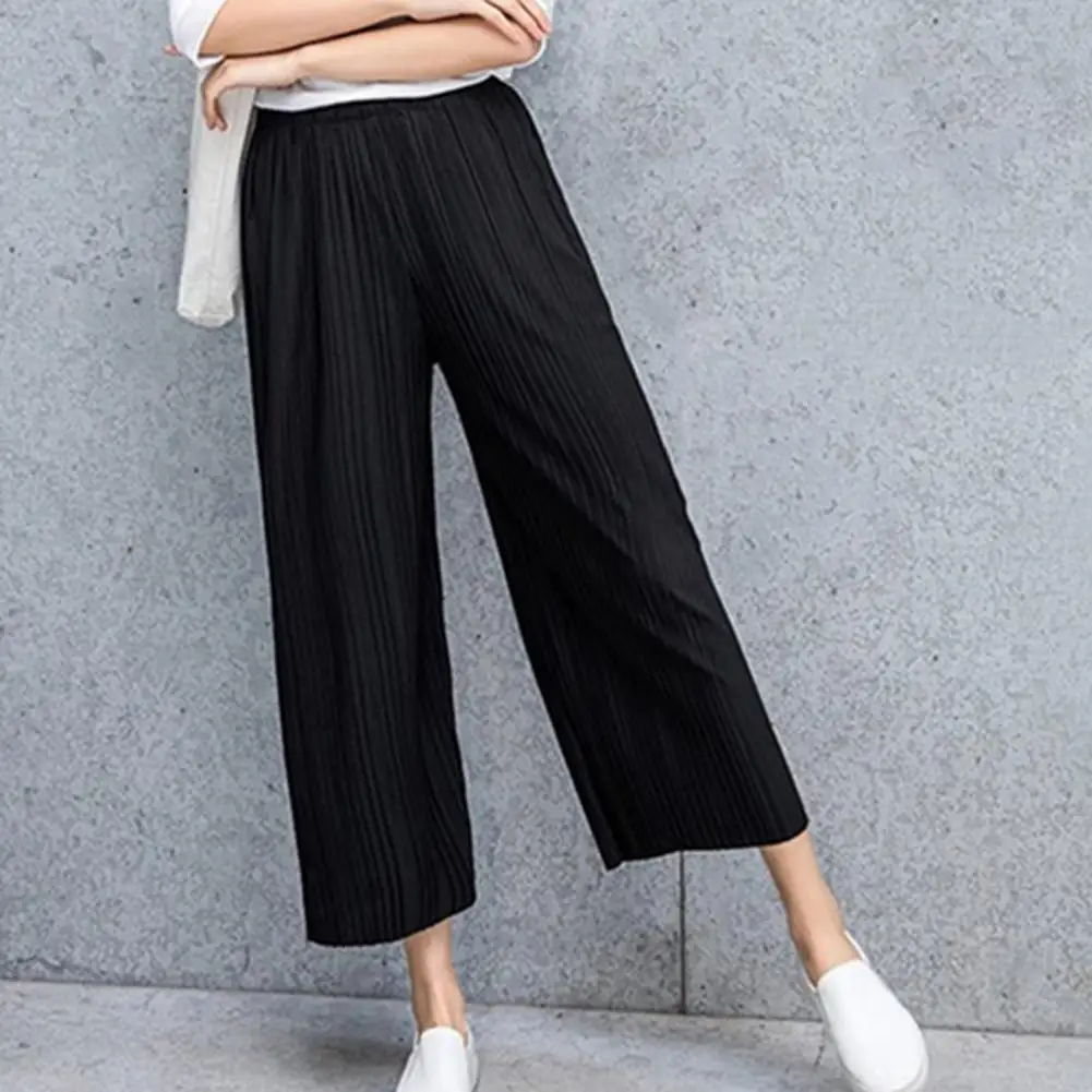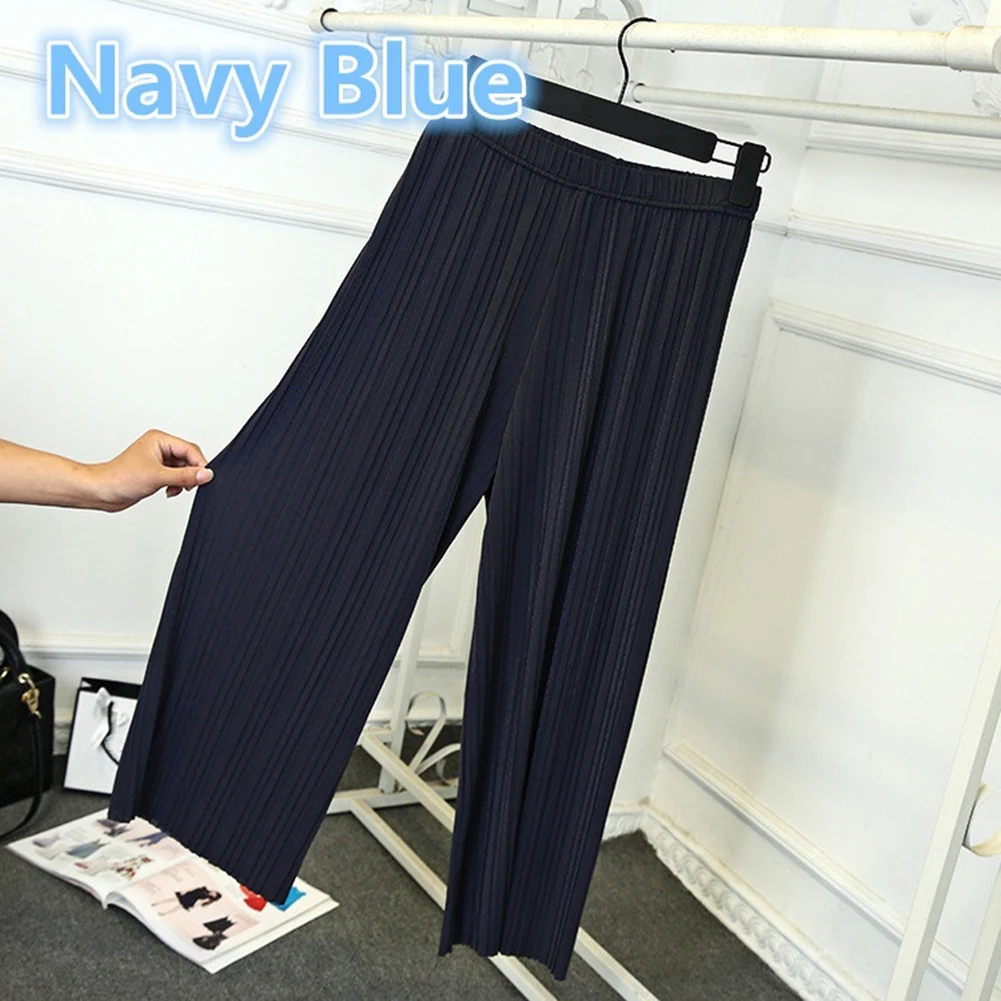 Женские однотонные плиссированные широкие брюки с эластичной резинкой на талии, укороченные брюки-кюлоты