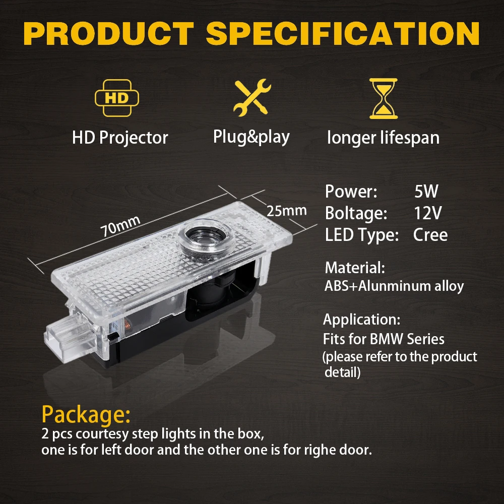 Примечание: Пожалуйста, проверьте модель вашего автомобиля, прежде чем сделать заказ. Спасибо. Для участника мини-клуба R55 F54 (2009 - 2020) Для Mini Countryman R60 (2010 - 2020) Для Mini Paceman R61 (2012 - 2020) Для мини-спортивного автомобиля R59 (2012 - 2020) Для Mini Cooper R55 R56 R57 R58 R59 R60 R61 F55 F56 F57 (2009 - 2020) (Только для моделей mini Cooper с оригинальными дверными лампами) Характеристики: Светодиодный мини-фонарь для дверей автомобиля Напряжение: 12 В Потребляемая мощность: 5 Вт. Материал: алюминиевый сплав ABS. Срок службы: более 80000 часов. Высокая яркость светодиодный, потребление энергии дикарь. Этот товар представляет собой новый тип зеленый автомобильный светильник, RDW E4 стандартная аутентификация. Посылка включает в себя: 2 шт. светодиодный светильник для двери