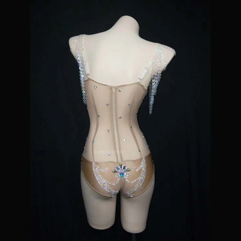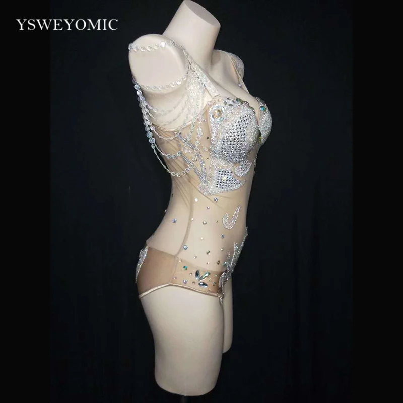 К требованиям заказчика; Сверкающие стразы жемчуг прозрачный комбинезон белого цвета головной убор Для женщин танцовщица бар Show наряд для выпускного вечера День рождения, комплект одежды