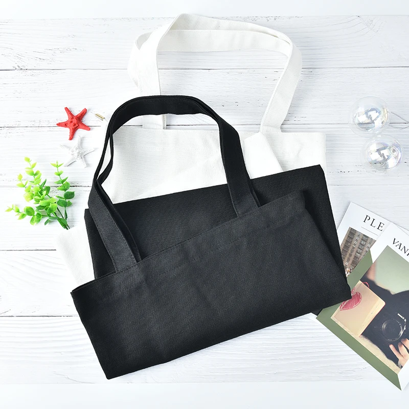 Портативная простая многоразовая Стильная белая/черная Хлопковая сумка для