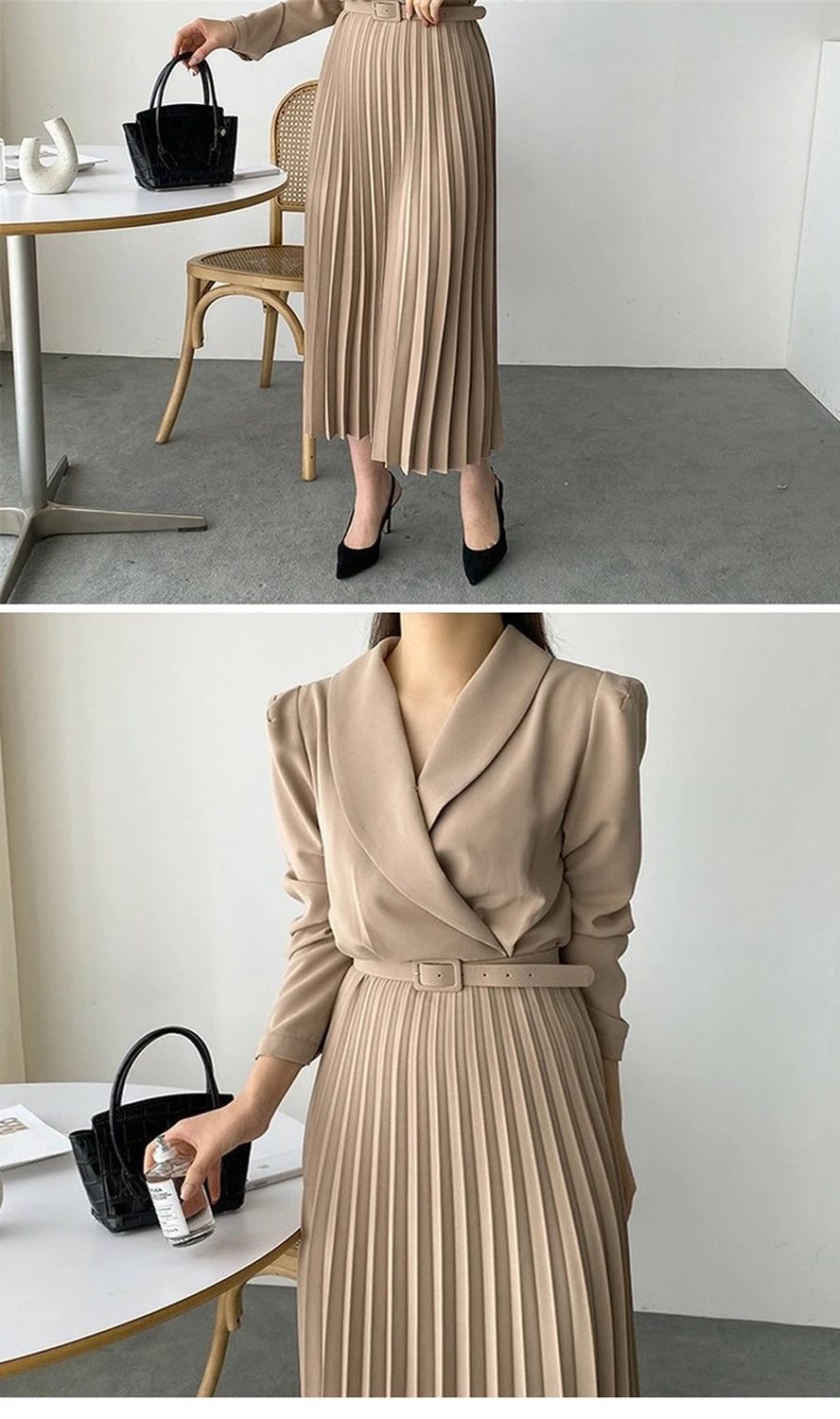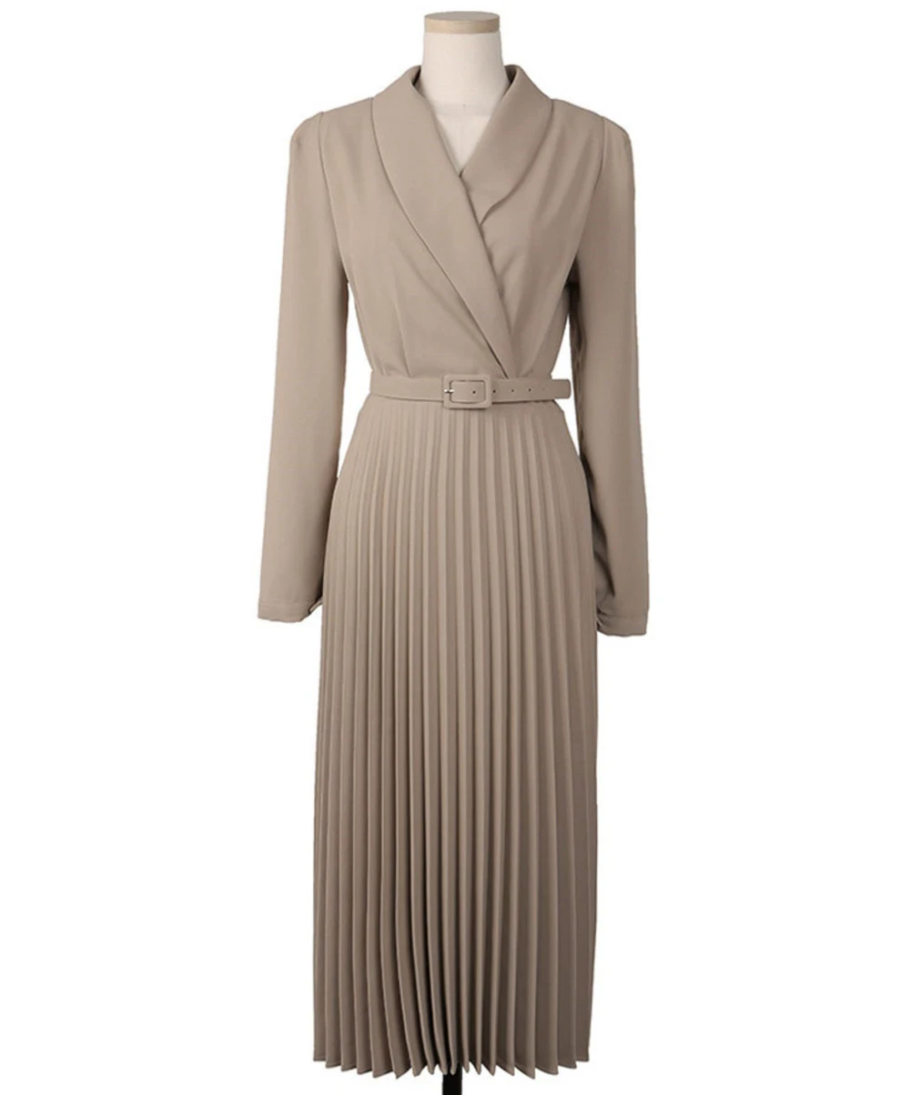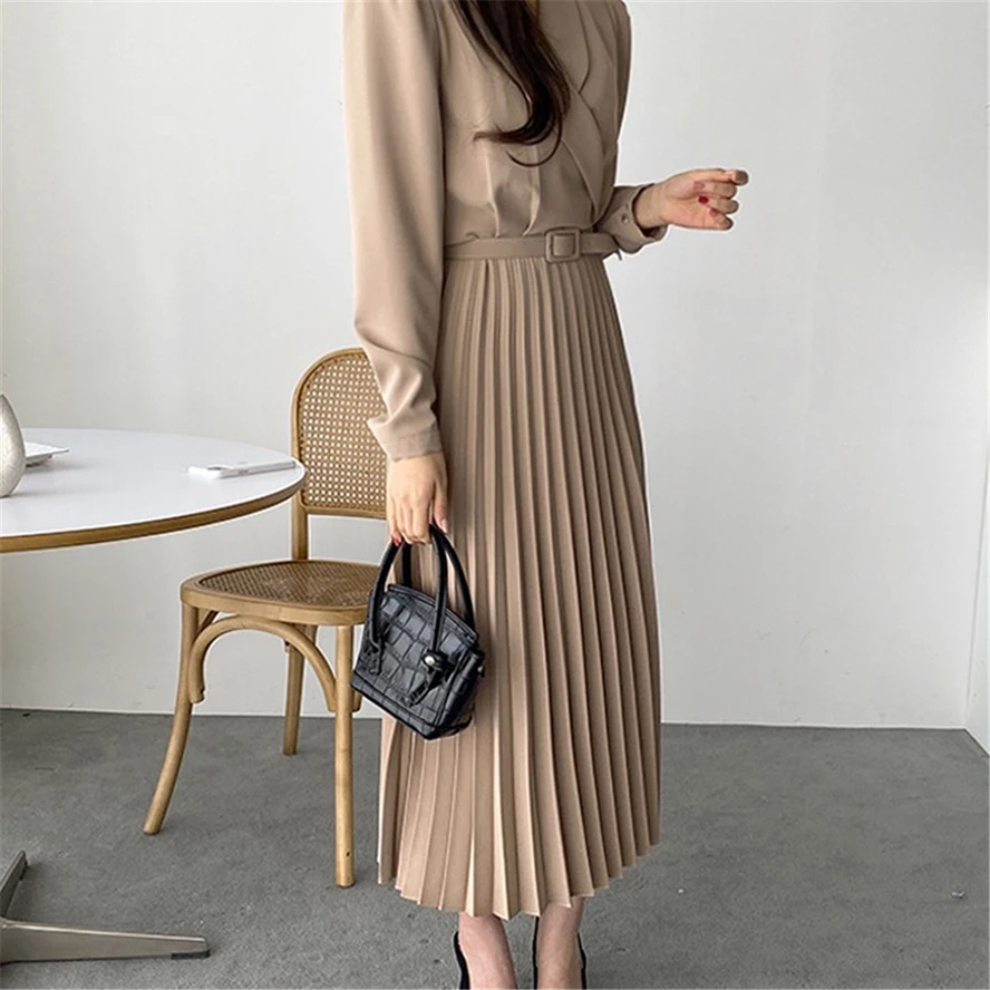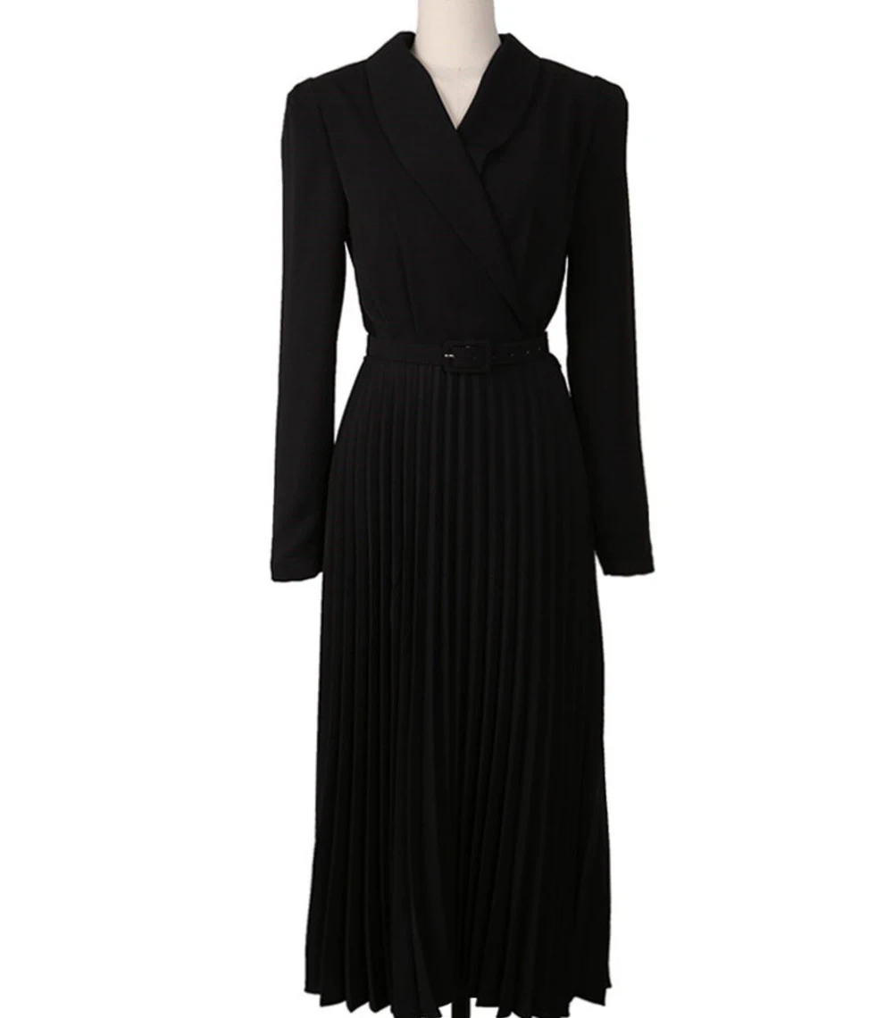 Элегантное платье-блейзер для офисных леди с поясом в складку и длинной юбкой полные рукава женское на вечеринку весной-осенью 2021 года.