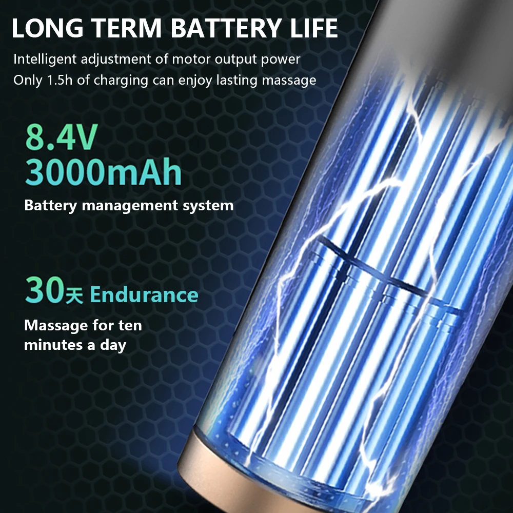 Спецификация продукта: Название продукта: Модный пистолет Входное напряжение: 110-240 В, Номинальное напряжение: 7,4, Номинальная частота: 50 Гц, Номинальная мощность: 24 Вт, литиевая батарея высокой энергии: 1800 мА, Источник питания: зарядка через USB Скорость: 1200-3300 об/мин Размер изделия: 21,5*16,5*6,5 см Особенности: 1. Эргономичная Силиконовая ручка, может минимизировать внешнюю силу. 2,3 регулировка скорости передачи, сенсорный экран 3. Вибрационный принцип, хамелинг стиль, сильная сила для массажа мышц. 4. Высокочастотная вибрация, рассеивание усталости, глубокий массаж, расслабление мышц, облегчение боли. 5,4 или 6 видов массажной головки, обеспечивают комфортный массаж, уменьшая повреждение костей и ключиц. 6. Устройство позволяет пользователю непосредственно использовать области болезненности и уменьшения боли, а также сокращает время восстановления, что делает его важным продуктом для любого спортсмена. 7. Идеально подходит для разогревания, облегчения болезненности, травмированных мышц, боли в мышцах и активации, облегчения стягивания; Увеличение до более высоких скоростей для больших и более сильных групп мышц. 8.USB Перезаряжаемый, удобный и простой в использовании. Посылка включает: Хост * 1 Массажная головка * 4 USB кабель * 1 Руководство * 1