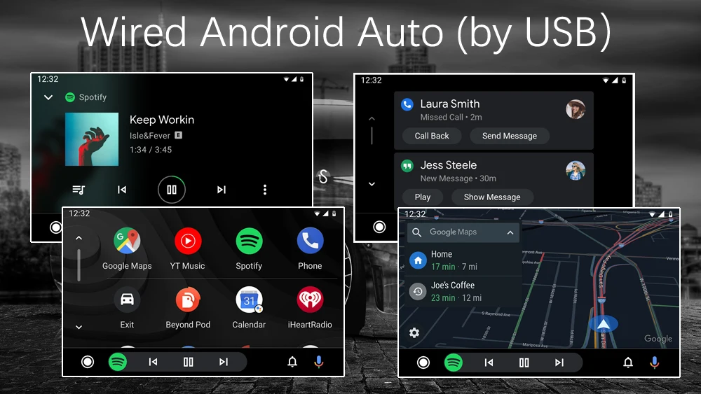 Проводной Android авто: Используйте проводное соединение (USB кабель) для входа в автоматическую систему Android