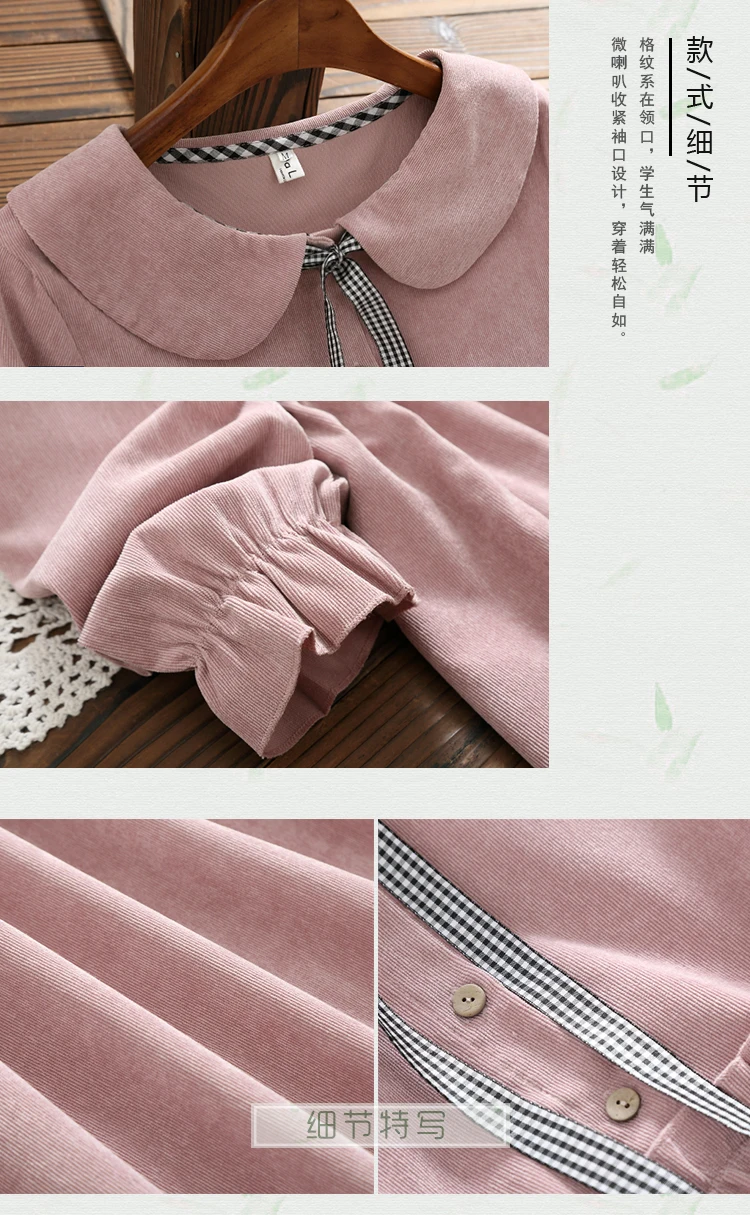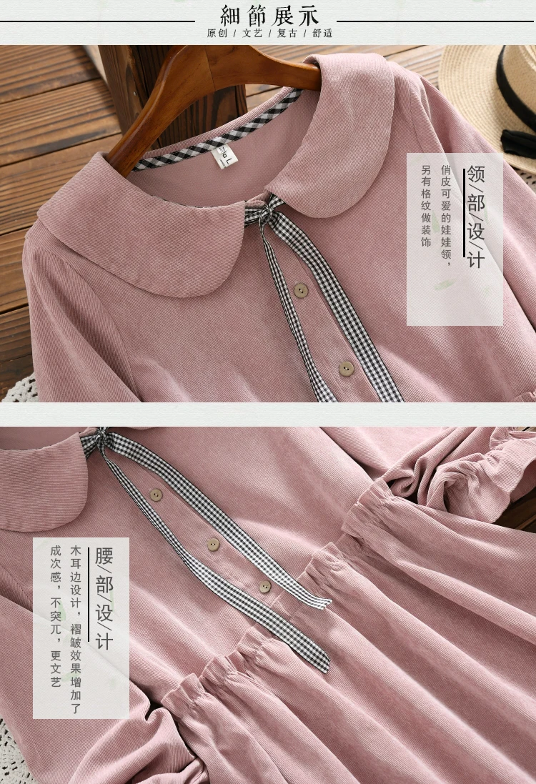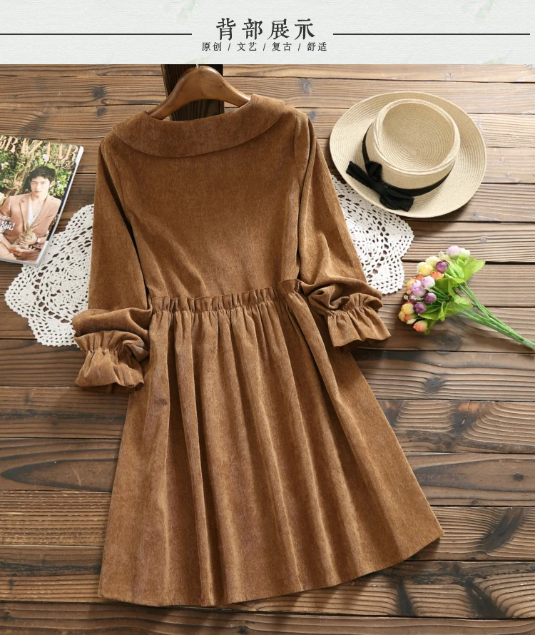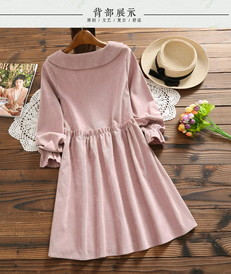 Весеннее кофейное, розовое вельветовое платье, новое осенне-зимнее женское платье с кукольным воротником и длинным рукавом, свободные винтажные платья Mori Girl Vestidos DG190