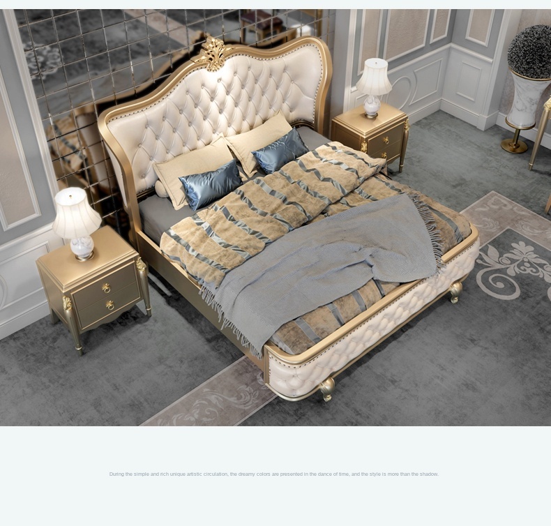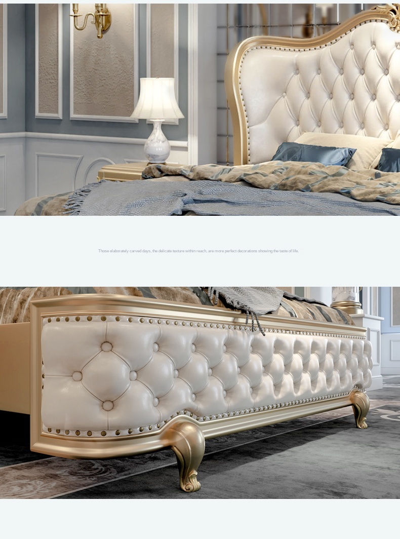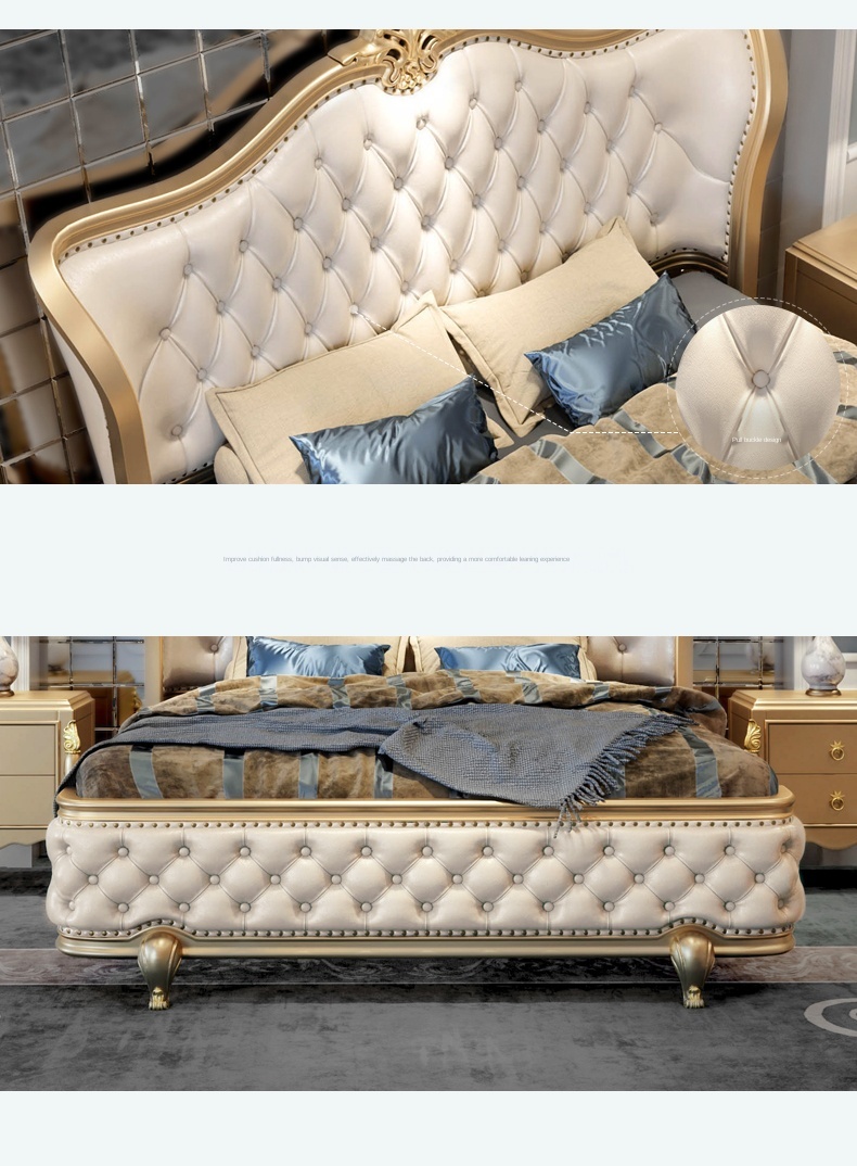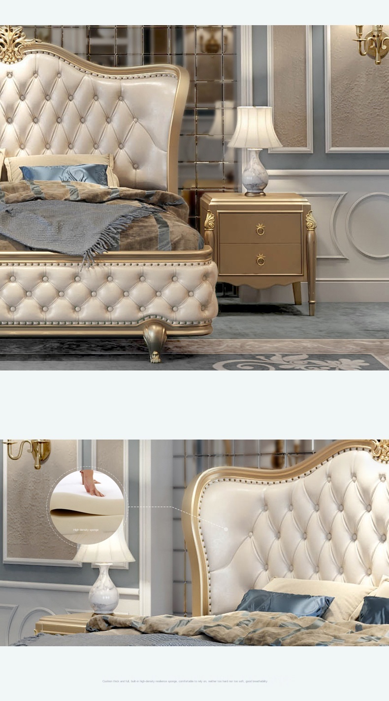 Европейский-Стиль 1,8 м кожаная двуспальная кровать из твердой древесины, бокал для шампанского золотые роскошные мастер Спальня Свадебные постельный комплект