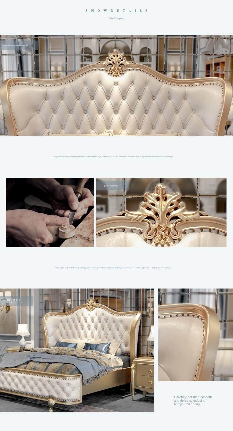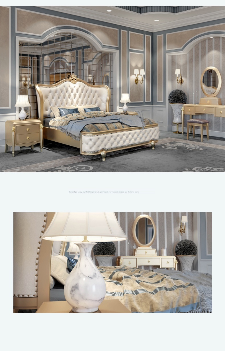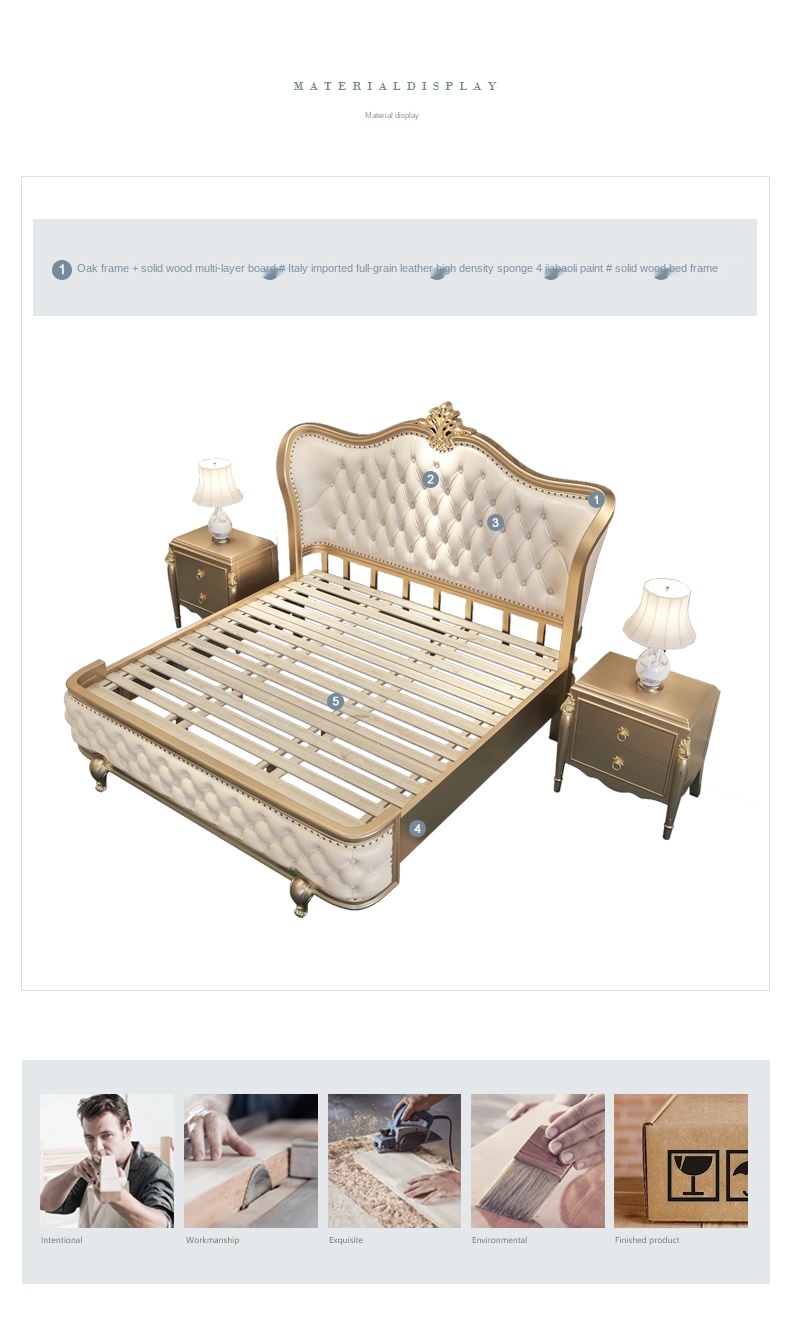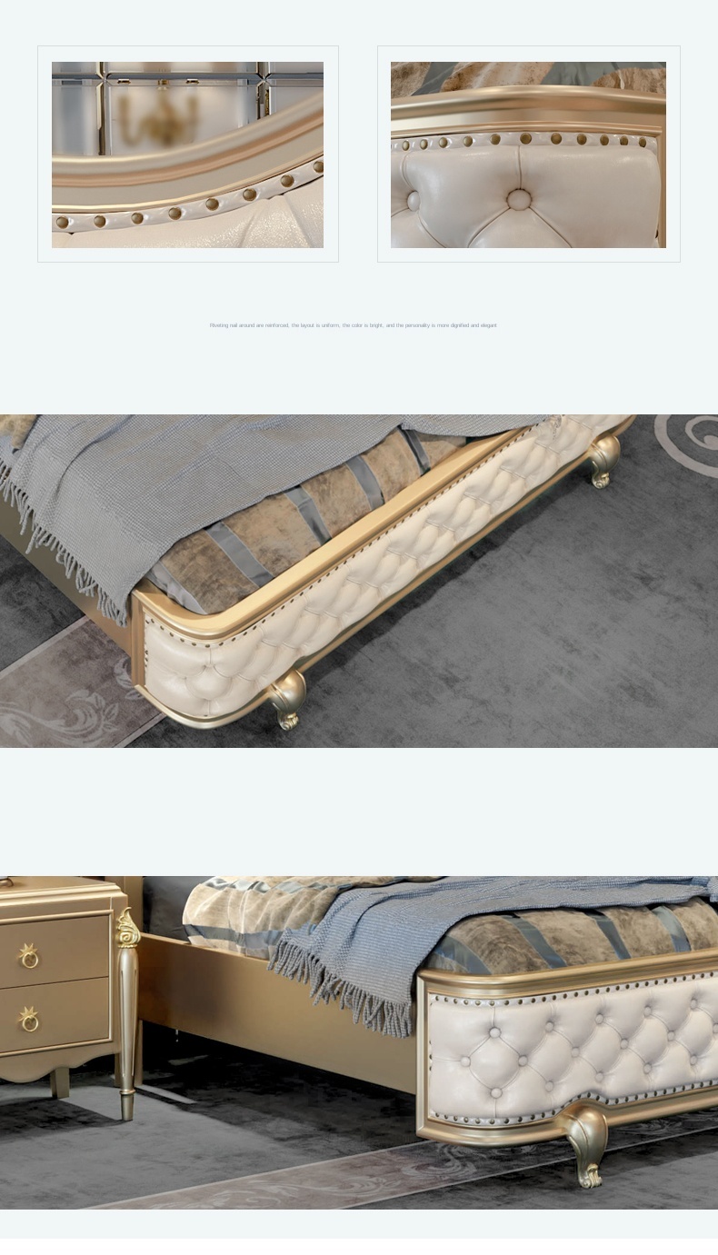 Европейский-Стиль 1,8 м кожаная двуспальная кровать из твердой древесины, бокал для шампанского золотые роскошные мастер Спальня Свадебные постельный комплект