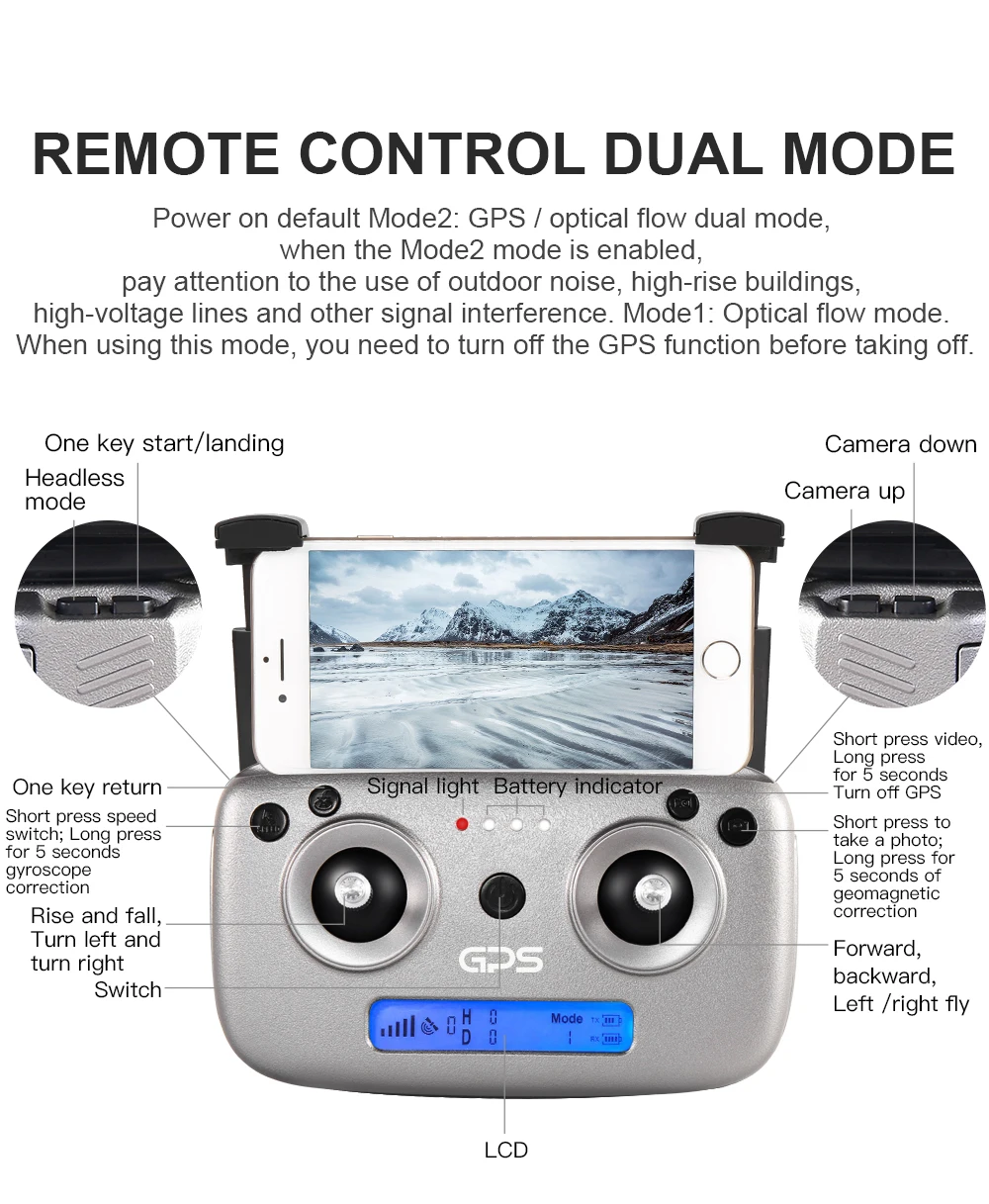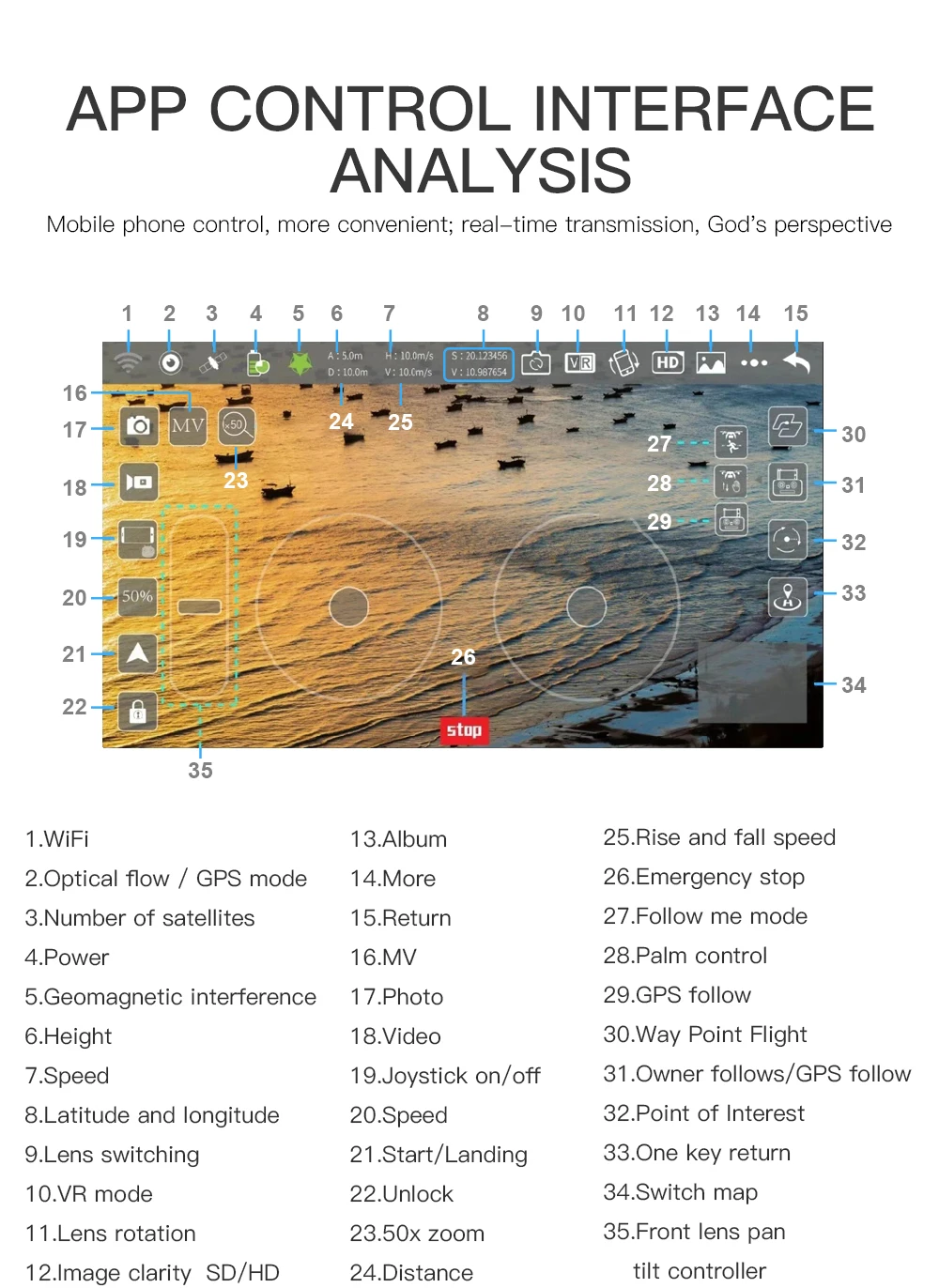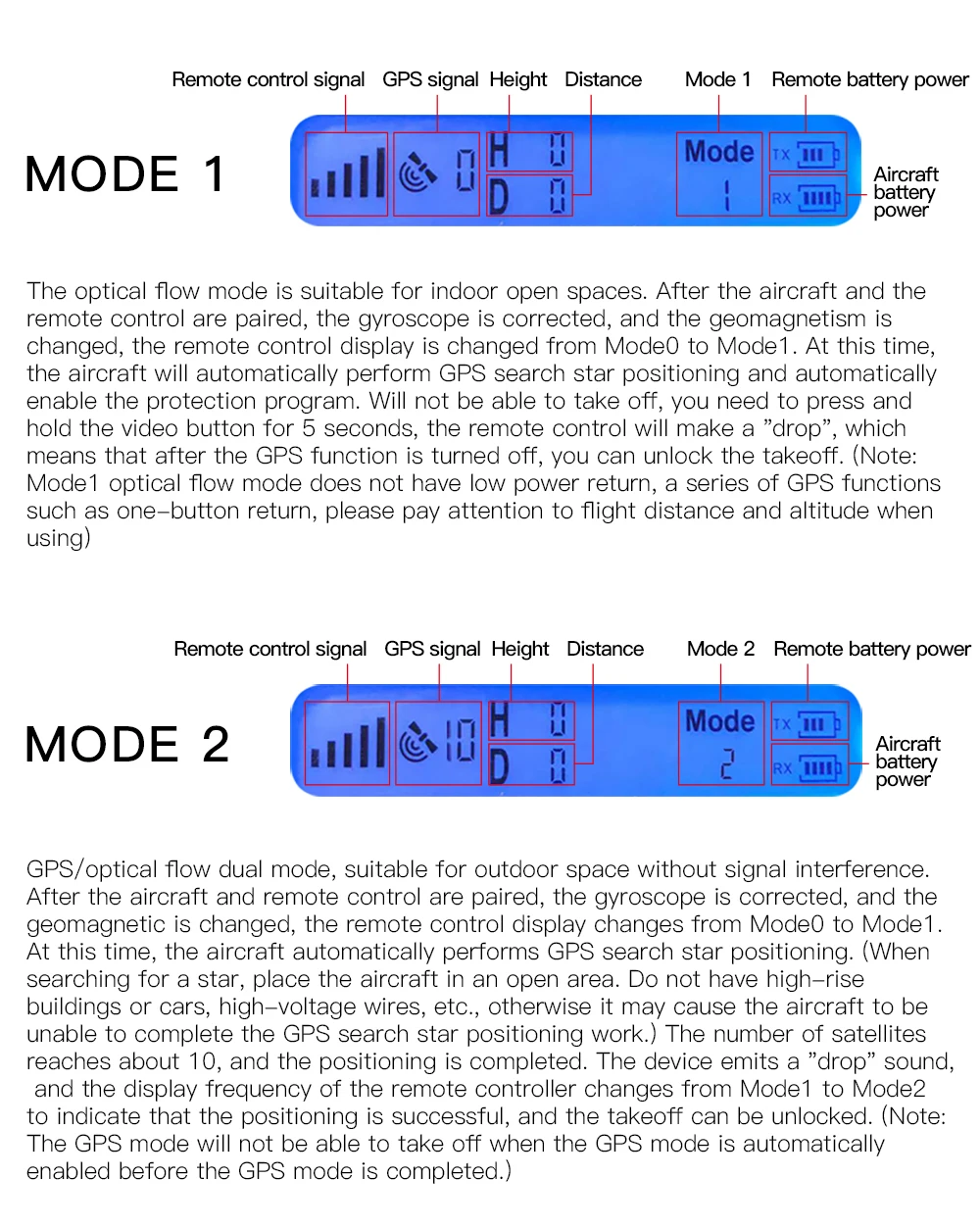 Характеристики: SG907 GPS возвращается в точку взлета с помощью одной кнопки, и низкая мощность возвращается в воздух, и нет сигнала на возврат. GPS Smart Follow: после того, как самолет подключается к GPS, функция приложения follow включена, и самолет следует за мобильный телефон. Изображение: 1-5 м от самолета для определения предмета и выполнения автоматического полета. Распознавание Жестов: в пределах 1-5 м от самолета, сделайте жесты камеры/жесты камеры к камере. Многоточечное планирование полета: самолет автономно летает по заданному маршруту, и игрок концентрируется на съемке. Окружность точки: Найдите центр и перемещайте желаемый радиус окружающего света с помощью джойстика. Функция восстановления самолета: непрерывно нажимайте значок gps-сигнала 3 раза, чтобы открыть интерфейс карты, карта показывает конечное расстояние самолета, широту и долготу. MV характеристики: фильтры, видеоэффекты, фоновая музыка, фото/видео обмен Характеристики продукта: Объектив камеры: 120 ° Регулируемый угол камеры: 90 ° Время полета: около 18 минут Время зарядки: около 4 часов Расстояние управления (свободное взаимодействие и отсутствие окклюзии):500 м Расстояние передачи изображения Wi-Fi (свободное взаимодействие и отсутствие окклюзии):300 м GPS следуй за мной: 30 м Изображение Следуйте за мной: 1-5 м Фокусное расстояние: 50x зум Ручная съемка жестов/видеозапись: 1-5 м Версия 1080P Разрешение видео 1080P:1920x1080p Разрешение фото 1080P:1920x1080p Камера пониженного обзора: 1280*720p Версия 4K Разрешение видео 4K:2048x1080 Разрешение фото 4K: 4096*3072P Камера пониженного обзора: 1280*720p Частота кадров: 25 кадров в секунду Емкость интеллектуального литиевого аккумулятора: 7,4 В 1600 мАч Окружность фиксированной точки Аэрофотосъемка с защитой от тряски Фото/видео поделиться GPS/ГЛОНАСС Двойная модель Посылка включает в себя: 1 x Квадрокоптер 1 х USB кабель для зарядки 1 пульт дистанционного управления 1 отвертка 4 лезвия 1x7,4 V 1600mAh литий-полимерный аккумулятор 1 х Руководство