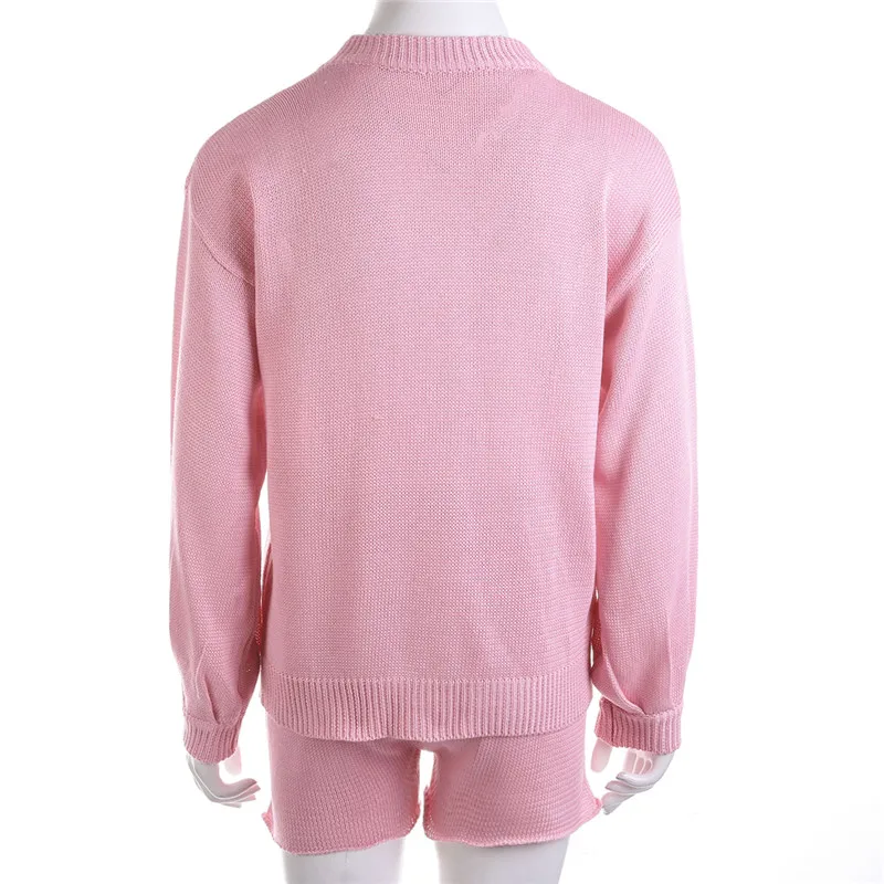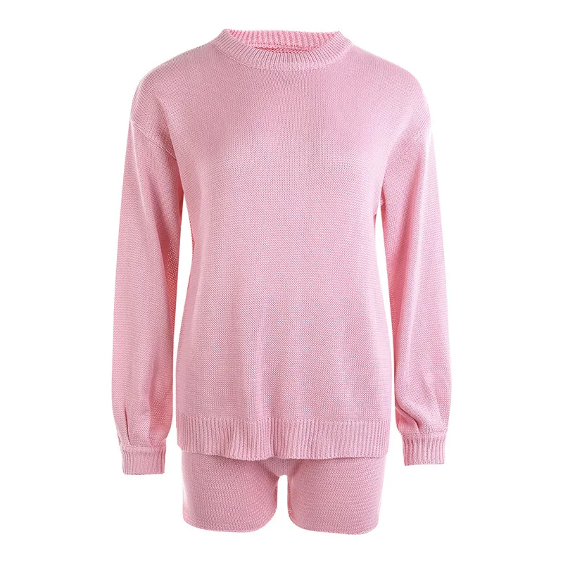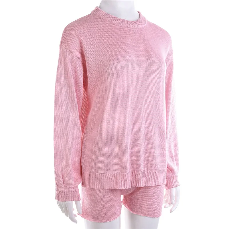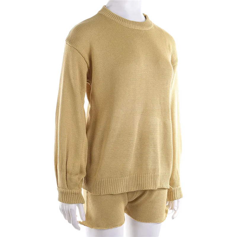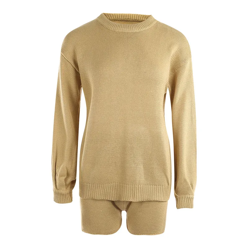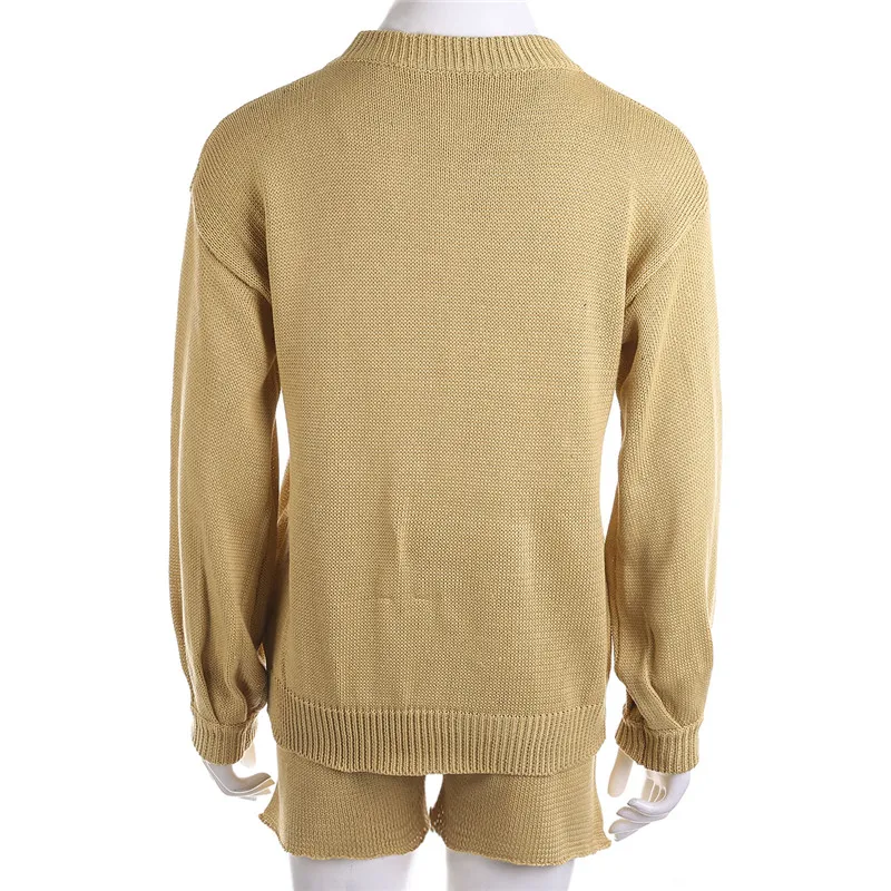 2020 Female Solid Color Sweater Suits Knit Sweater Long Sleeves Casual O-neck Top+Shorts 2pcs Women Costume Suits Knitwear Femme!