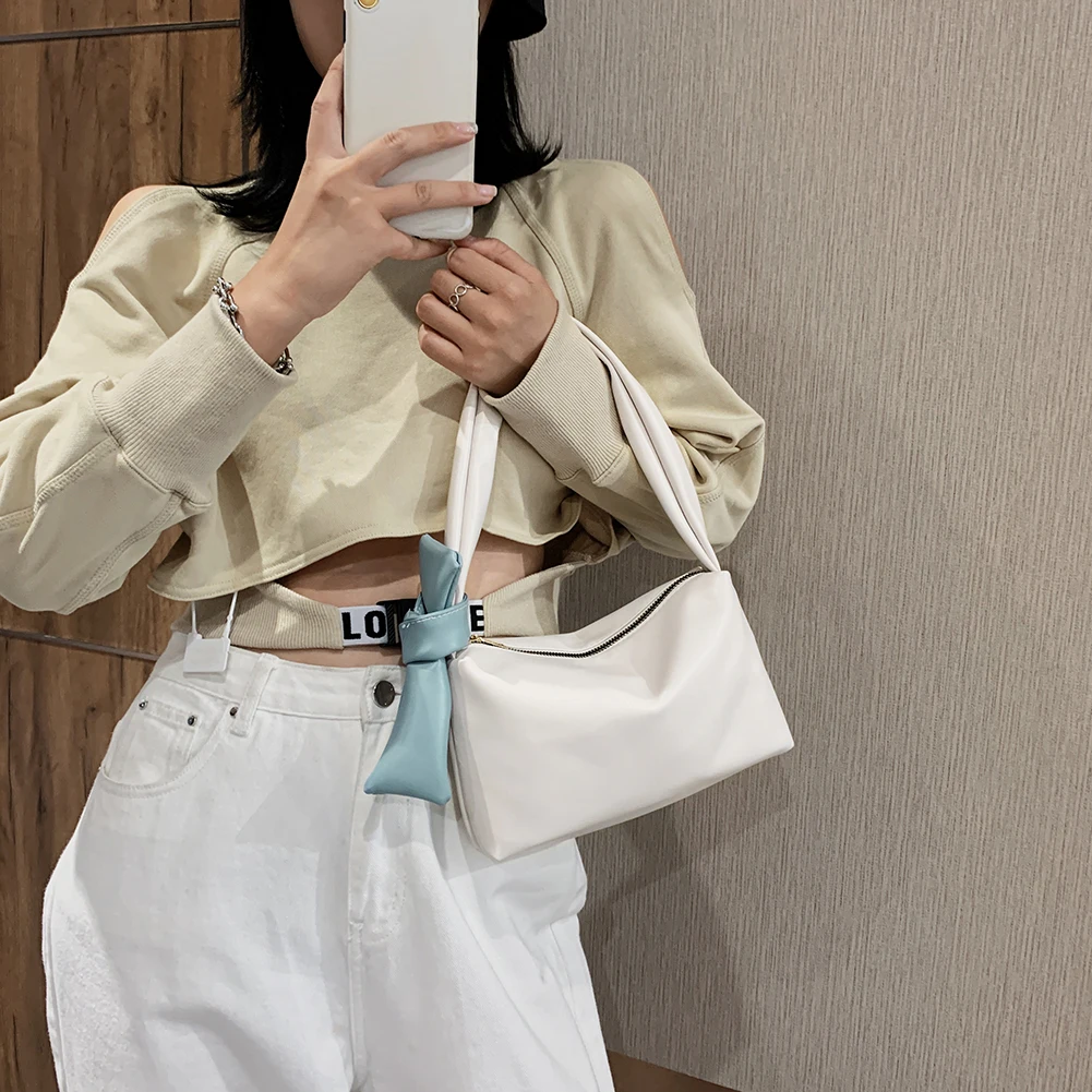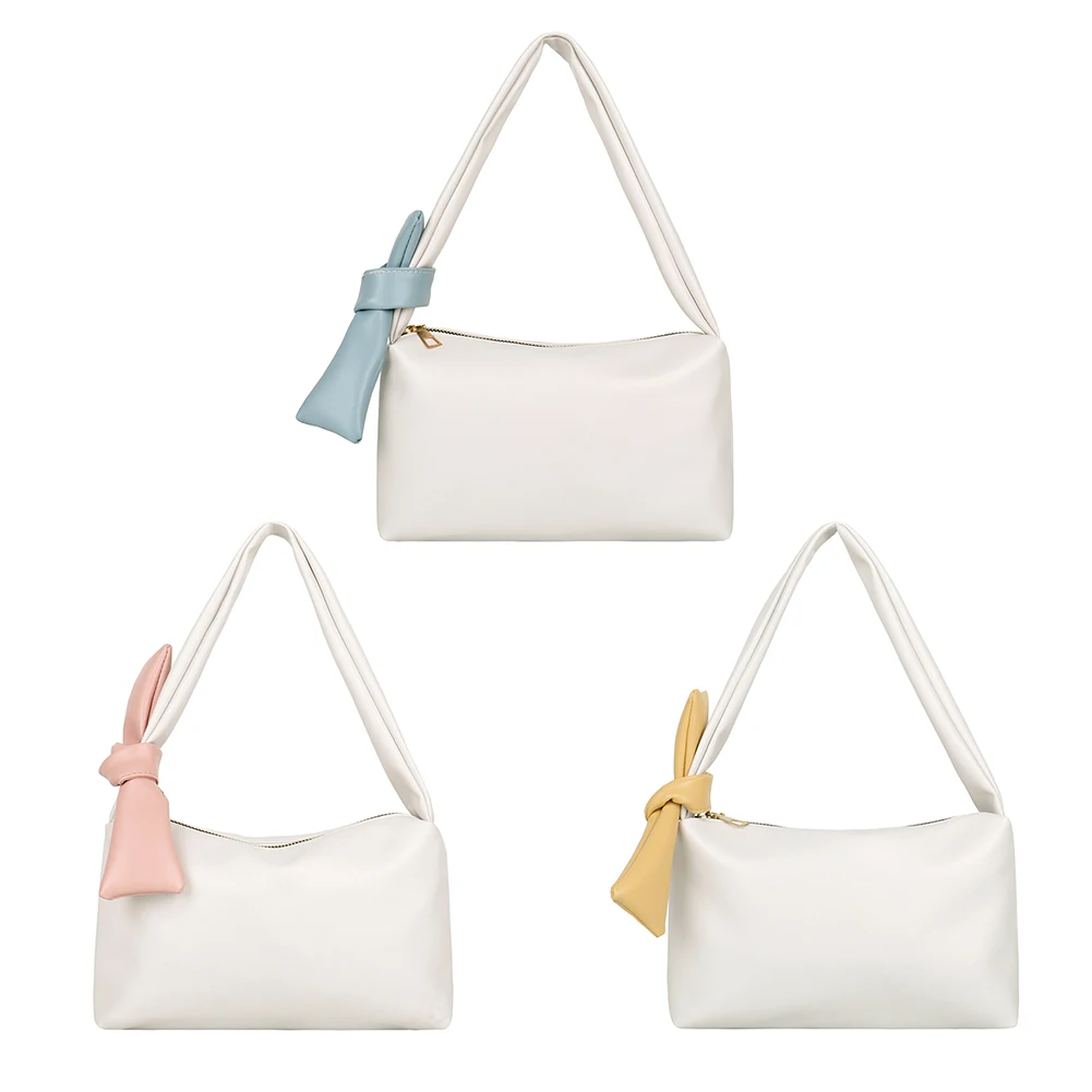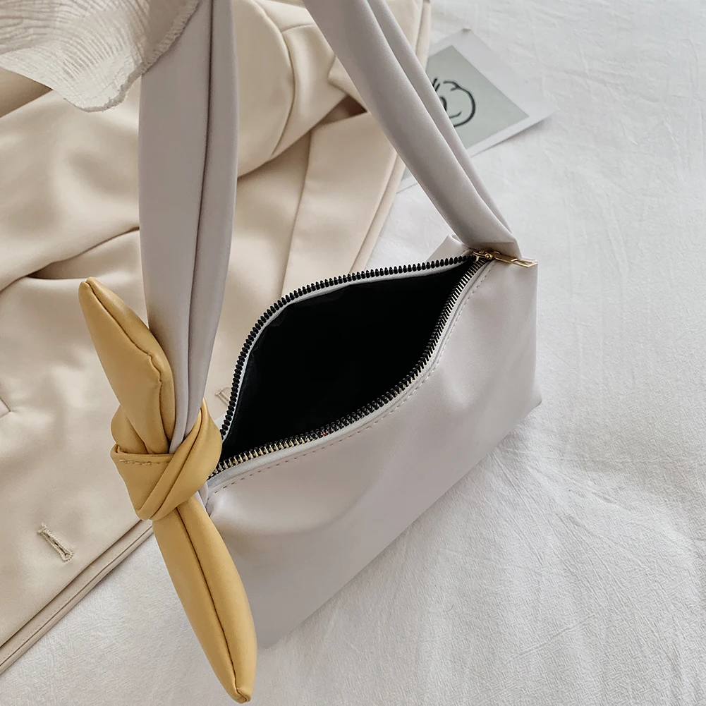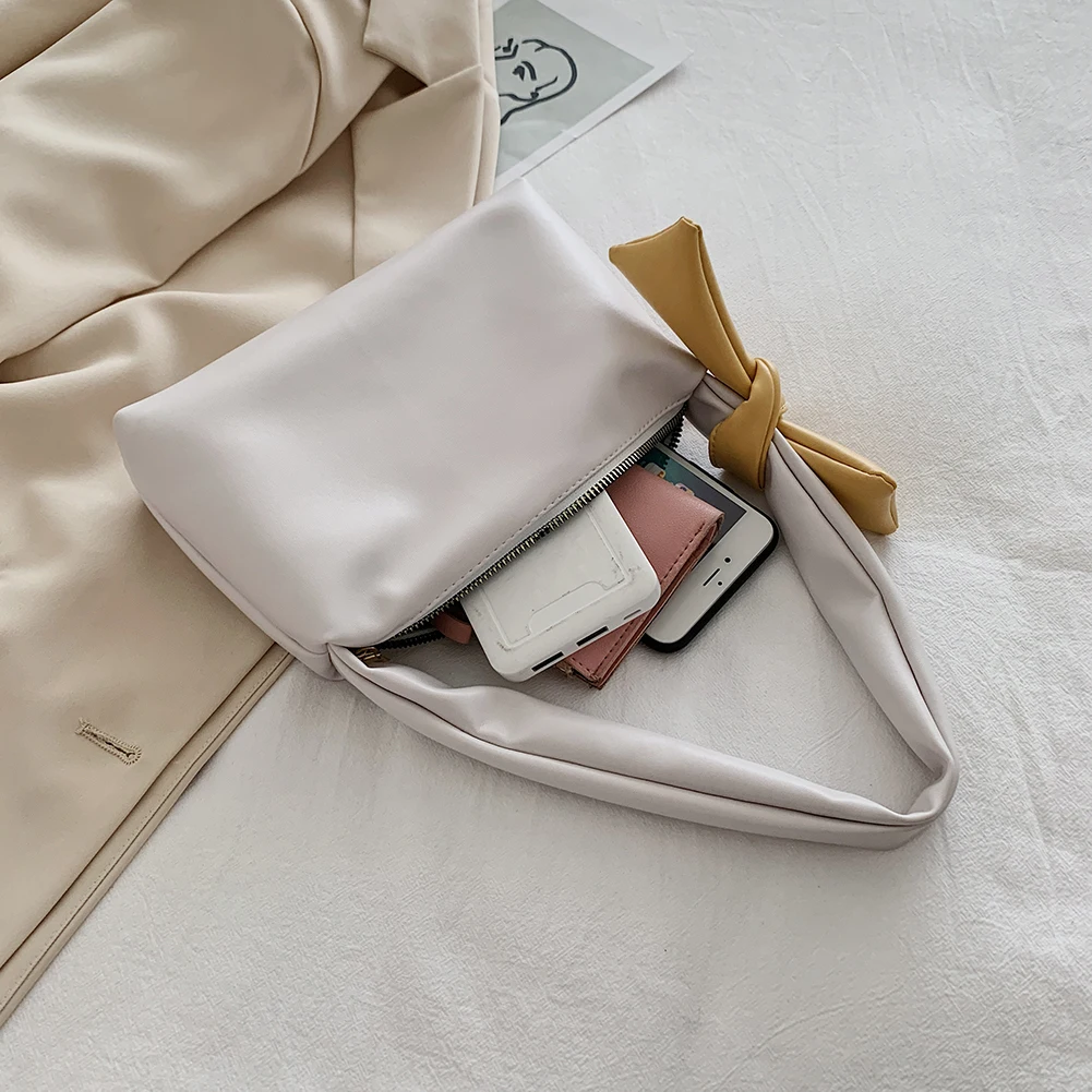 Модная однотонная сумка, женская сумка с бантом, элегантные сумки на плечо, Сумки из искусственной кожи на молнии, переносные дорожные клатчи