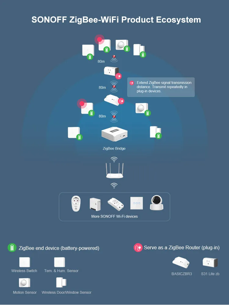 SONOFF SNZB-02-это датчик температуры и влажности ZigBee, который может работать плавно с мостом SONOFF ZigBee для отслеживания и записи изменения температуры и влажности в вашем доме, все показания в реальном времени можно проверить в приложении eWeLink. Еще лучше, вы можете создать состояние в смарт-сцене, в котором Вентилятор включается/выключается, когда температура достигает предельного значения, или осушитель воздуха в вашей комнате начинается, когда влажность выше, помогает предотвратить рост плесени и аллергены. Вы можете использовать умную сцену для запуска оповещений о таких событиях, как высокая/низкая температура, высокая/низкая влажность и многое другое. Функция обмена устройствами позволяет вашим детям, семье, а также соседям получать информацию об условиях окружающей среды вашего дома с помощью своих мобильных телефонов. Функция камеры доступна на сенсоре, чтобы вы знали, что происходит в вашем доме. Это оставляет за собой время для принятия мер, если возникнут пожарные опасности. Это датчик, работающий от батареи, который может быть помещен в любом уголке вашего дома для наблюдения за комнатной температурой и влажностью. Нет установки инструмента, просто Наклейте датчик на поверхность стены или устройства и посмотрите, как приятно работать для вас!