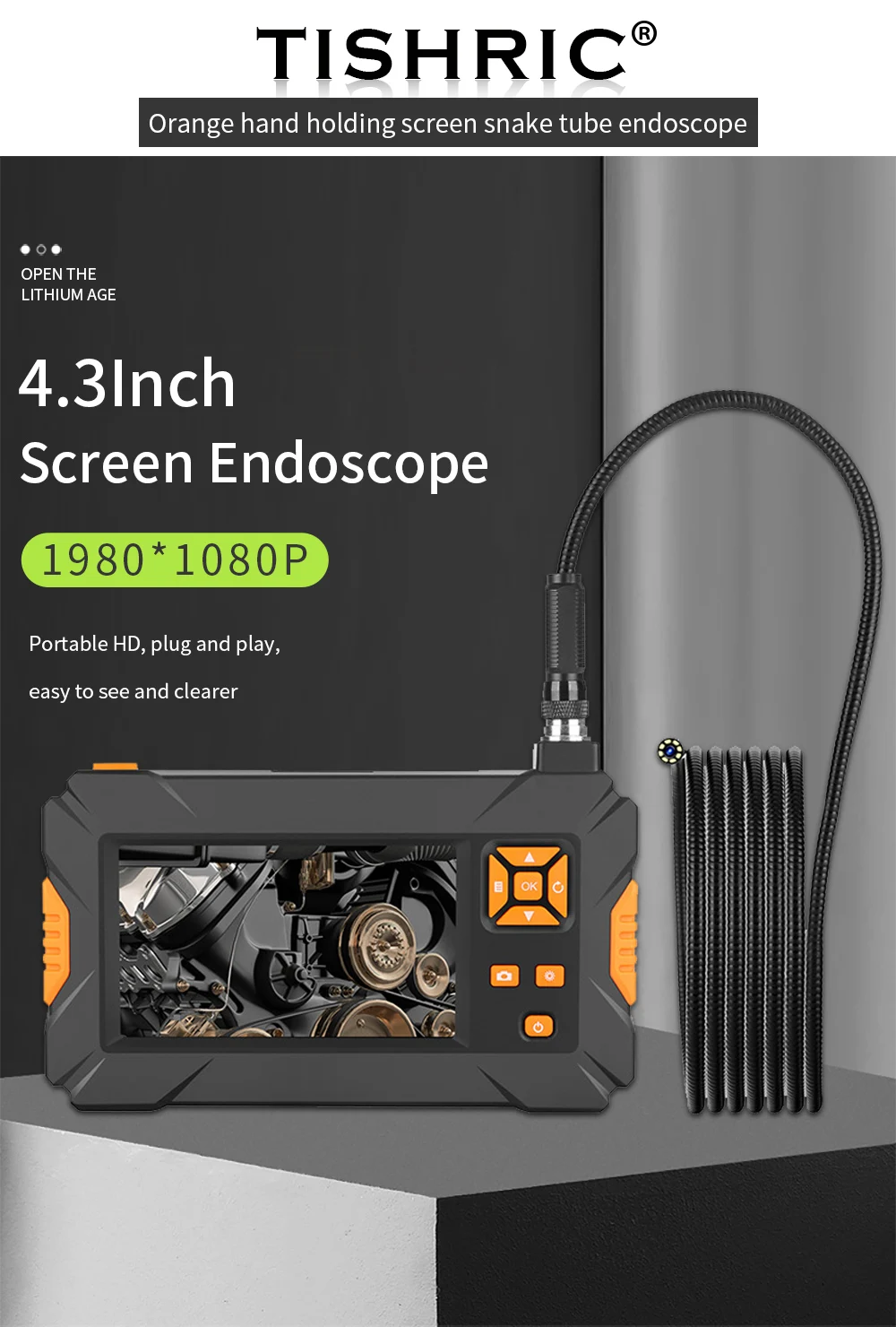 TISHRIC эндоскоп промышленный ручной бороскоп IP67 Водонепроницаемый 4,3 дюймов 1080P HD камера со змеиным принтом с 8 светодиодный эндоскоп для автомобилей